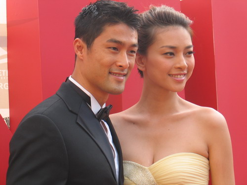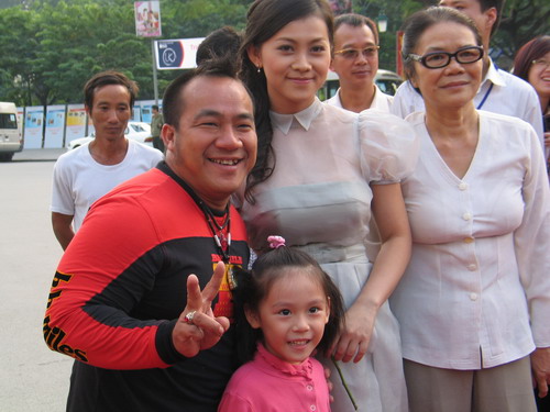 ...trong khi đó bà xã của Phước Sang là nữ diễn viên Kim Thư (mặc váy đen) cùng một người đẹp khác "tháp tùng" nam tài tử Hong Kong Trương Gia Huy