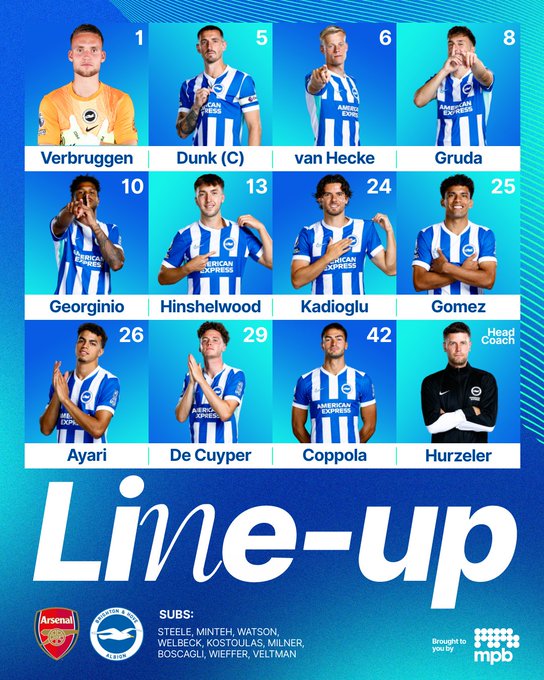 Brighton: Verbruggen; Wieffer, Veltman, Dunk, Kadioglu; Ayari, Gomez, Gruda; Mitoma, Rutter, Minteh