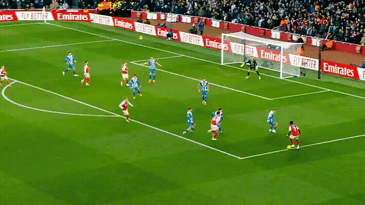 Phút 73: Arsenal phản công nguy hiểm, đáng tiếc rằng, Brighton đã chơi chắc chắn.