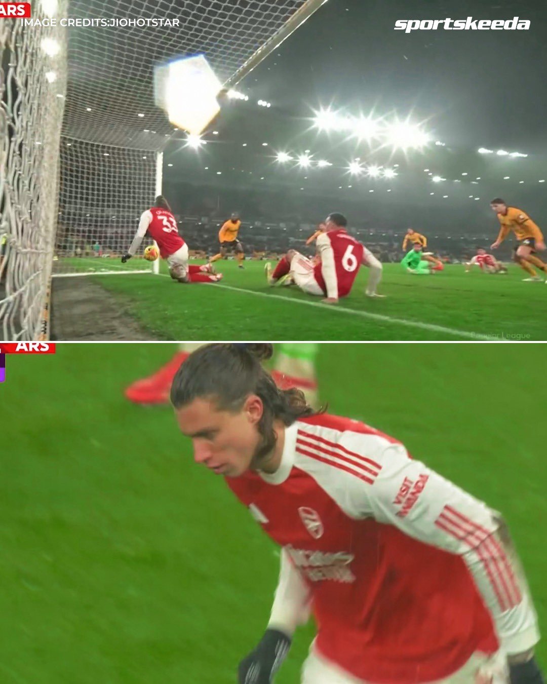 Trận đá sớm vòng 31 Ngoại hạng Anh khép lại với 4 bàn thắng đầy kịch tính, trong đó điểm nhấn là pha phản lưới nhà ở phút bù giờ cuối cùng khiến Arsenal tuột mất 3 điểm.