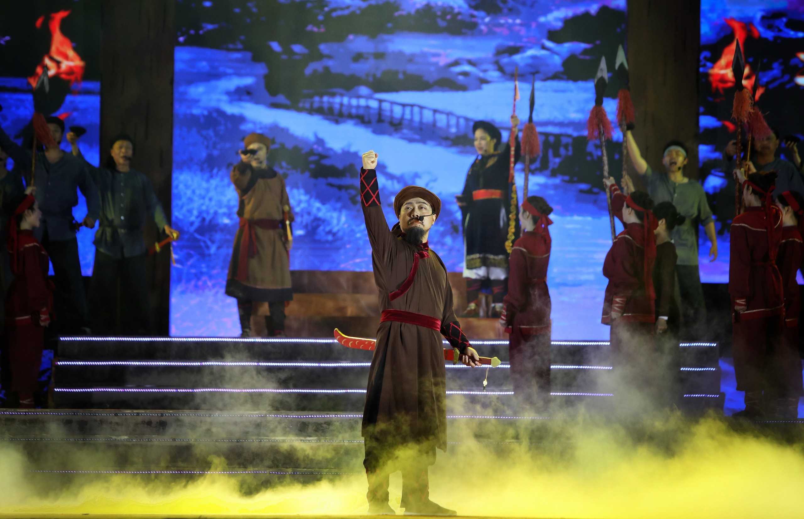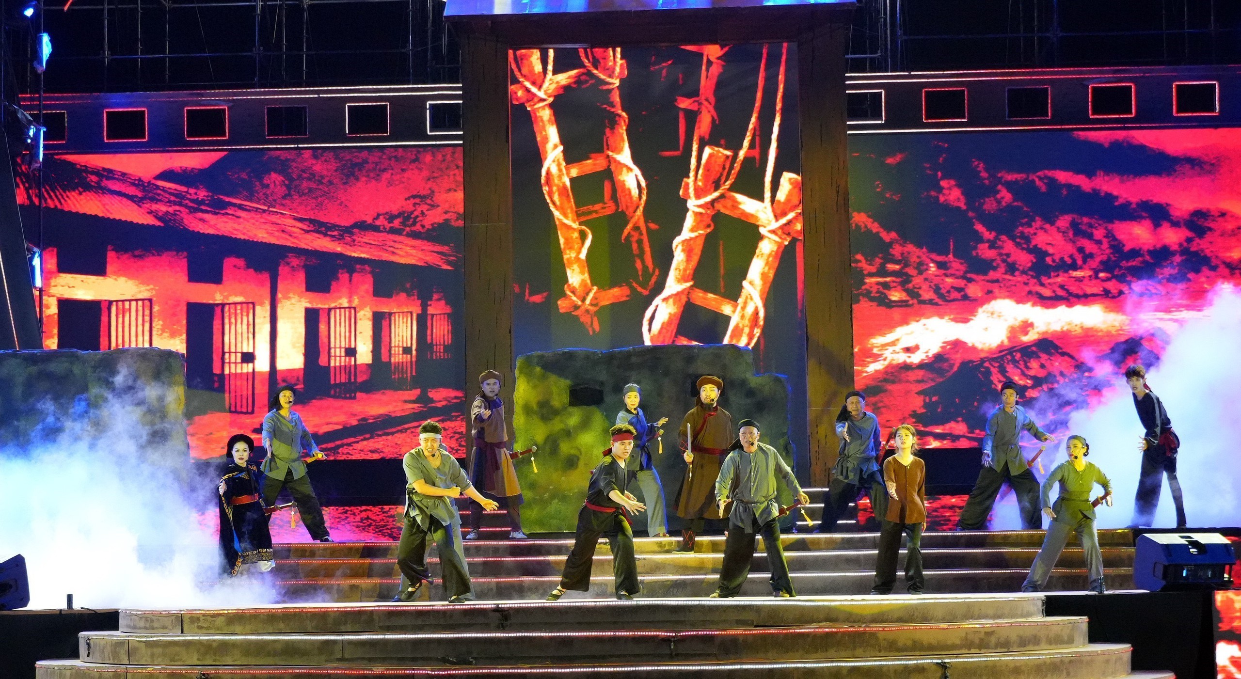 Biểu diễn ca kịch “Hùm thiêng Yên Thế” trong Lễ kỷ niệm 142 năm cuộc khởi nghĩa Yên Thế (1884 - 2026) tổ chức tối 16/3/2026 tại Khu di tích lịch sử Hoàng Hoa Thám (xã Yên Thế, tỉnh Bắc Ninh). Ảnh: TTXVN