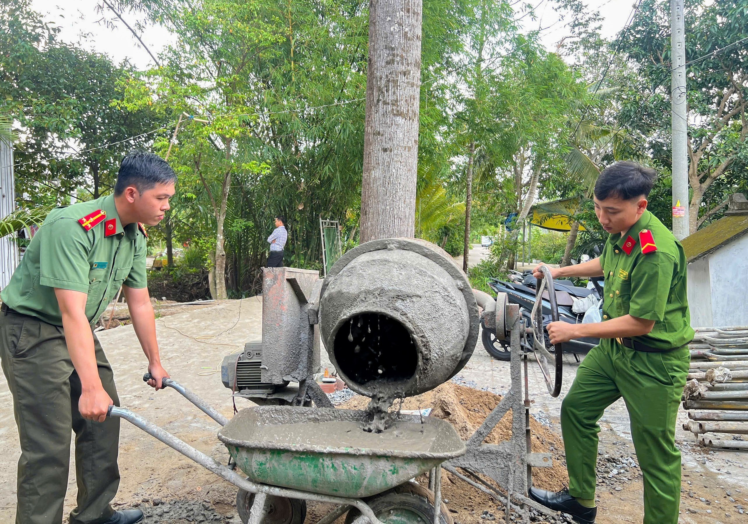Cán bộ, chiến sĩ Công an thành phố Cần Thơ hỗ trợ xây dựng nhà ở cho hội viên Hội Cựu Công an nhân dân khó khăn về nhà ở. Ảnh: TTXVN phát
