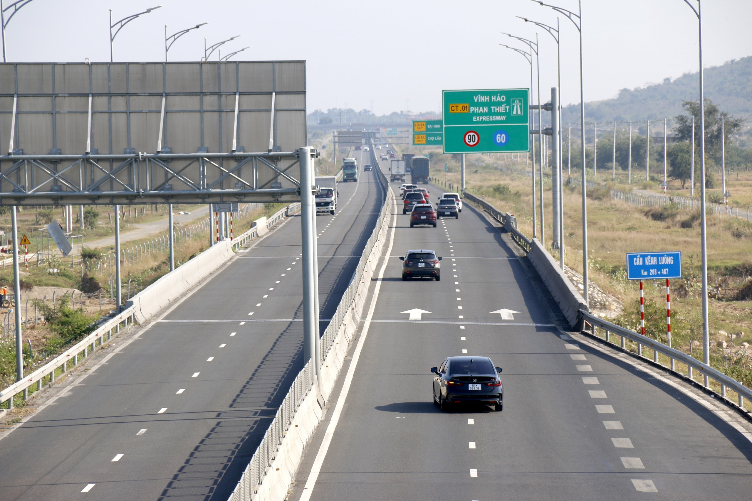 Cao tốc Vĩnh Hảo - Phan Thiết (Lâm Đồng) dài hơn 100km đã đưa vào vận hành thử nghiệm hệ thống theo dõi giao thông thông minh. Ảnh: Nguyễn Thanh - TTXVN