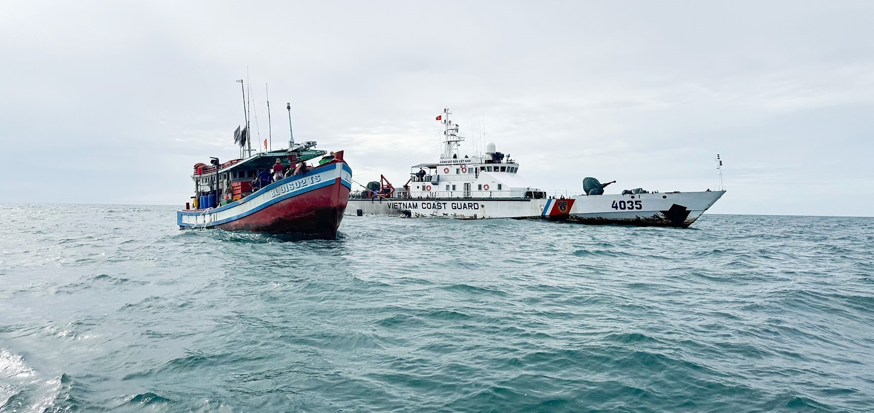 Tàu CSB 4035, Hải đội 422, Hải đoàn 42, Bộ Tư lệnh Vùng Cảnh sát biển 4 tuần tra, kiểm tra, kiểm soát trên biển. Ảnh: TTXVN phát