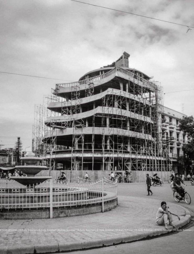 Hình ảnh tòa nhà "Hàm cá mập" được Nhiếp ảnh gia Andy Soloman, người Anh chụp năm 1992, khi công trình đang được xây dựng. Ảnh: Andy Soloman/TTXVN