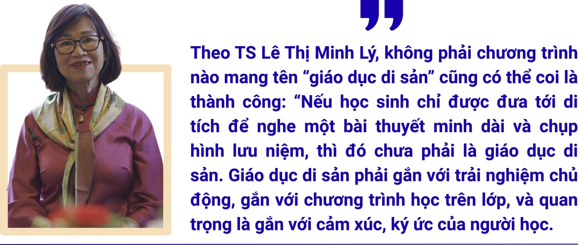 Tuy nhiên, theo TS Lê Thị Minh Lý, không phải chương trình nào mang tên "giáo dục di sản" cũng có thể coi là thành công: "Nếu học sinh chỉ được đưa tới di tích để nghe một bài thuyết minh dài và chụp hình lưu niệm, thì đó chưa phải là giáo dục di sản. Giáo dục di sản phải gắn với trải nghiệm chủ động, gắn với chương trình học trên lớp, và quan trọng là gắn với cảm xúc, ký ức của người học".
