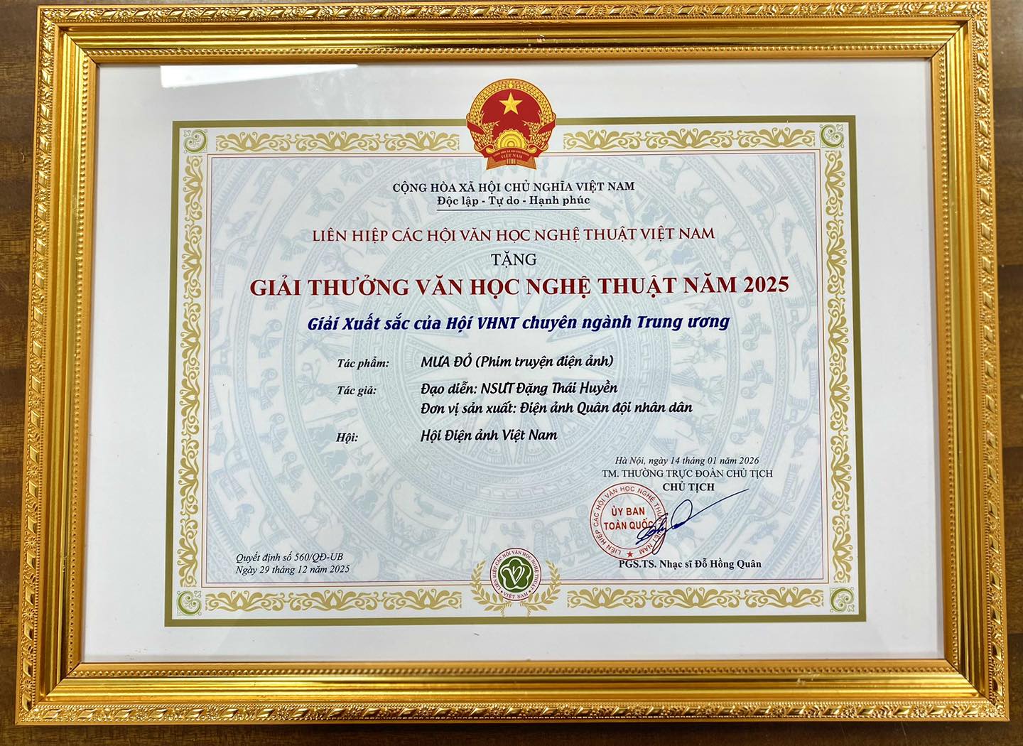 Điện ảnh Quân đội nhân dân vinh dự được trao Giải xuất sắc của Hội Văn học Nghệ thuật chuyên ngành Trung ương với bộ phim truyện điện ảnh “Mưa đỏ”. Ảnh: Page Phim Mưa đỏ