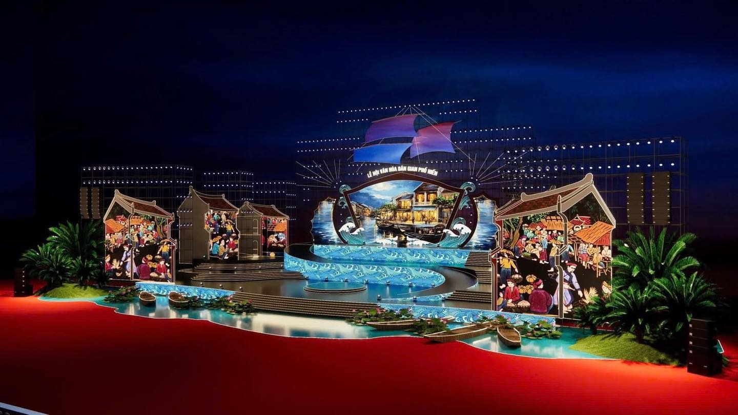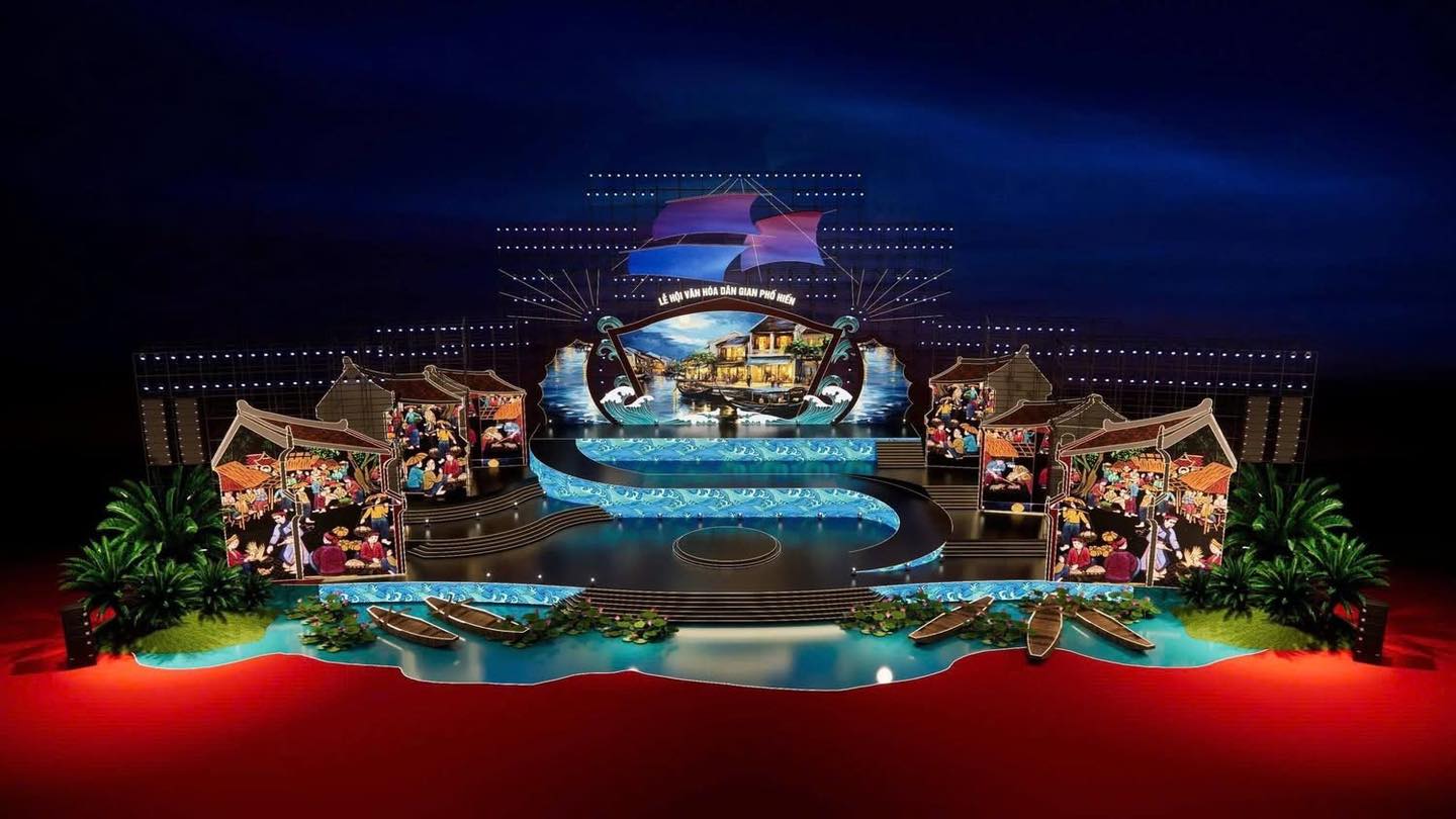 Phối cảnh sân khấu của chương trình nghệ thuật đặc biệt "Phố Hiến: Danh bất hư truyền – Về miền thắng tích". Ảnh: Hưng Yên 24h