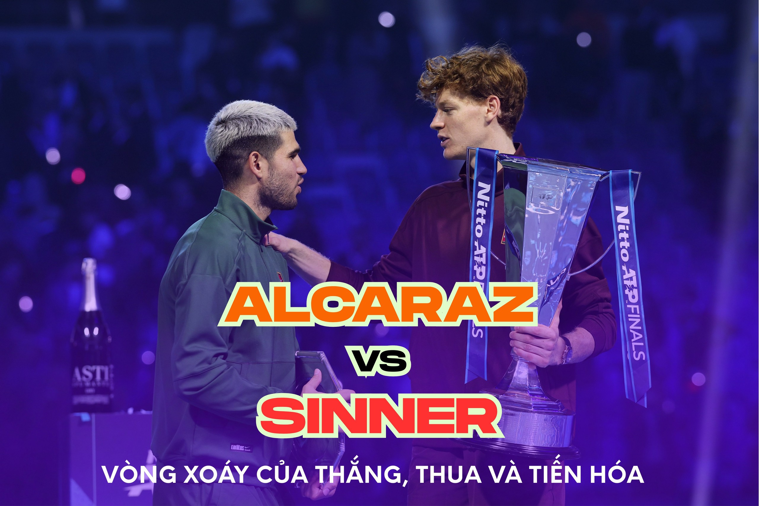 Hai tay vợt này đang kéo nhau vào một vòng xoáy cạnh tranh chưa từng thấy kể từ thời Federer - Nadal, khi những danh hiệu lớn trở thành vật truyền tay trong cuộc chạy tiếp sức không điểm dừng. Tám Grand Slam gần nhất đều thuộc về họ, bên cạnh hai chức vô địch ATP Finals của Sinner và việc Alcaraz đòi lại ngôi số 1 thế giới.