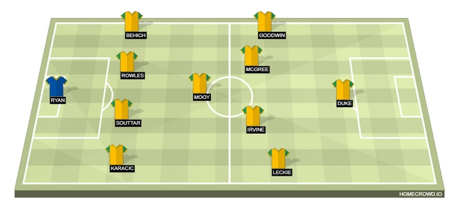 Hai bên cánh, Behich và Karacic sẽ có một ngày làm việc vất vả. Họ sẽ phải hỗ trợ cặp trung vệ Souttar và Rowles. Hỗ trợ cho họ ở phía trên sẽ là Leckie cùng với Goodwin. Hai cầu thủ này vốn là những cầu thủ tấn công tốt. Vì thế, nếu buộc phải phòng ngự thì cũng là điều kìm hãm bộ đôi này.