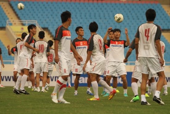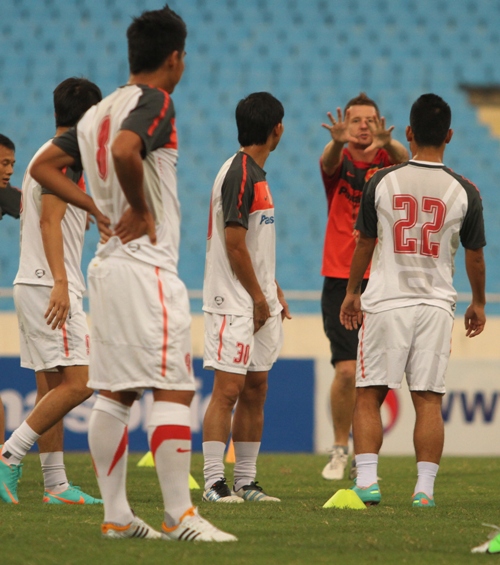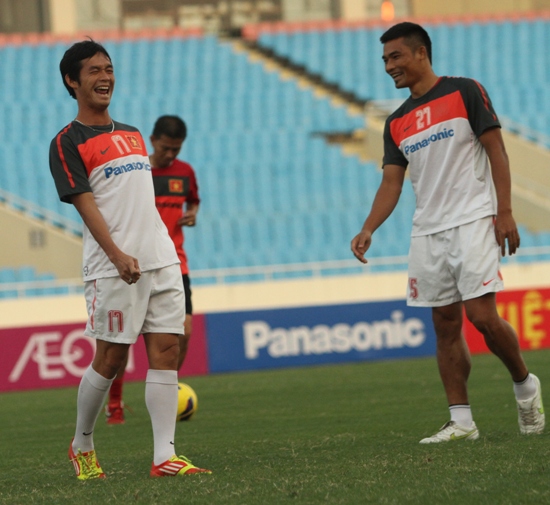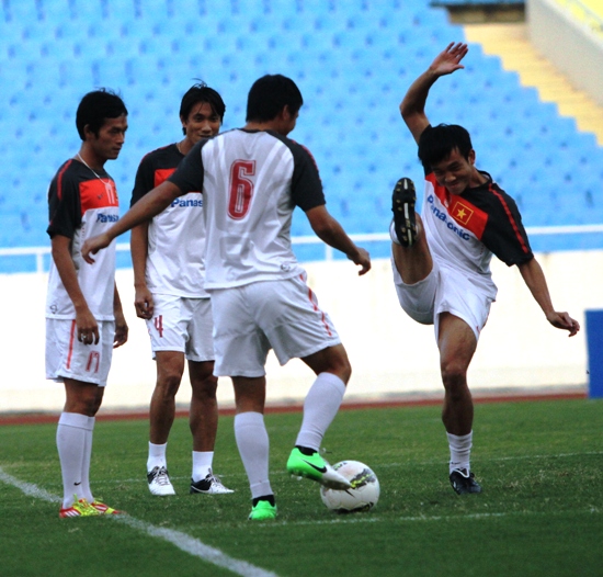 Trước trận đấu với ĐT Malaysia và cũng bắt đầu bước vào giai đoạn nhả khối lượng tập luyện để chuẩn bị cho AFF Cup, HLV Phan Thanh Hùng cho các cầu thủ tập nhẹ trong buổi chiều nay mà nói như trợ lý Nguyễn Văn Sỹ là "vừa tập vừa chơi cho thoải mái tinh thần, mai còn đá".