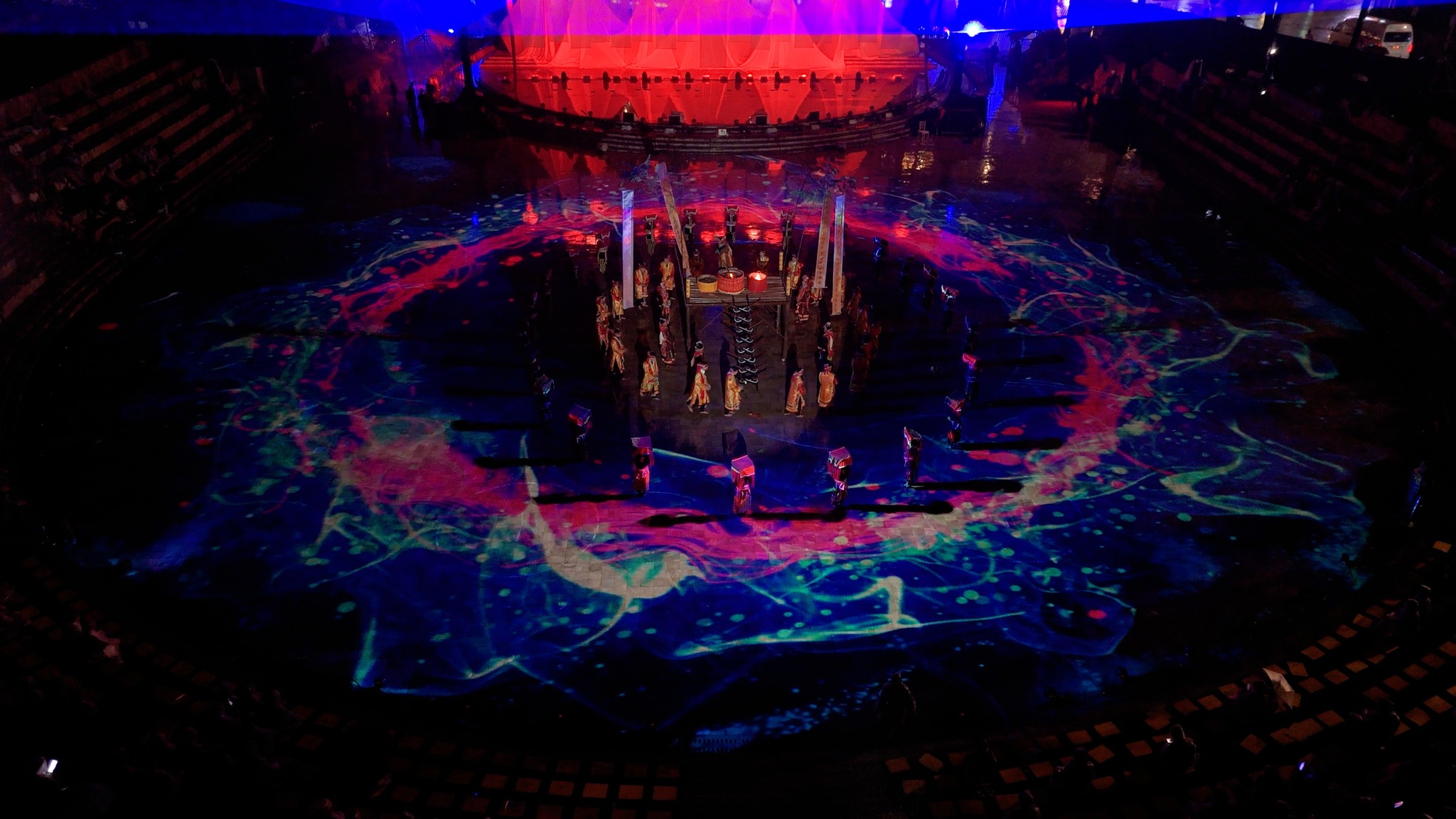 Sự kết hợp giữa ngôn ngữ sân khấu đương đại và nghi lễ truyền thống tạo ra một không gian trình diễn hiếm có