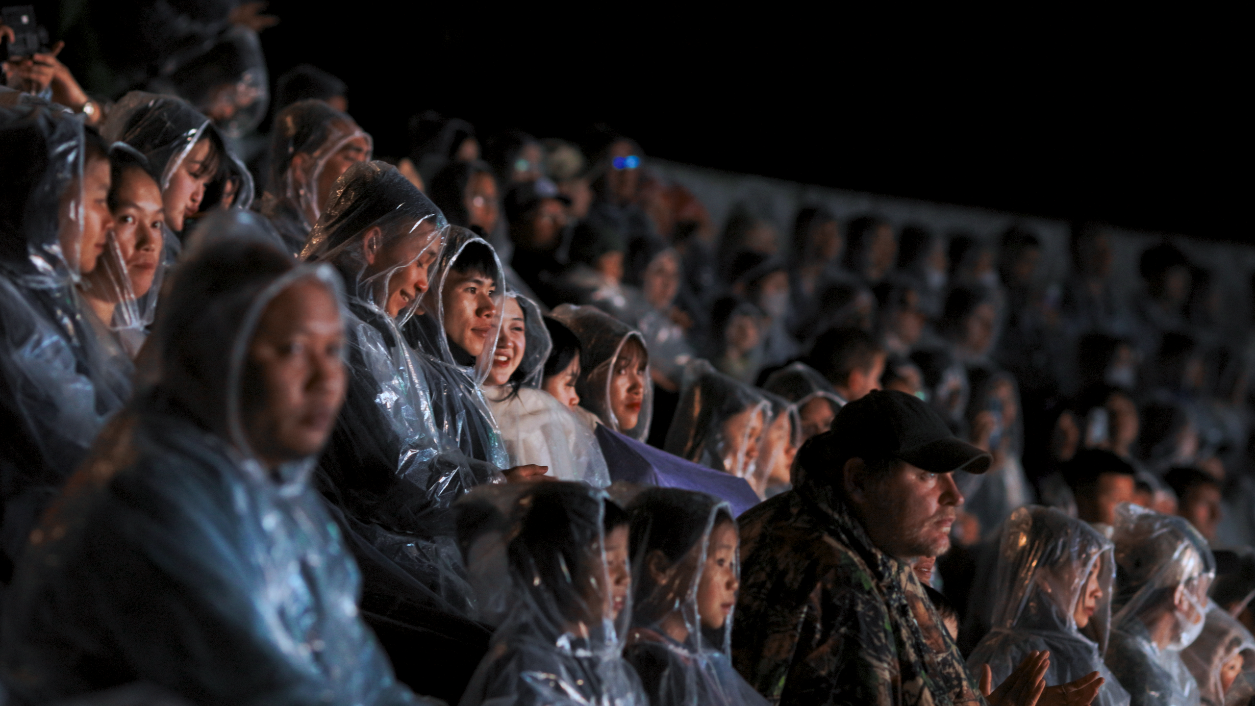 Và rồi, "Thiêng" đã thực sự đến - trong mưa, một cơn mưa trong trẻo. Khán giả Sa Pa tối ấy qua cổng miễn phí, ai cũng được phát thêm một chiếc áo mưa để cùng trải nghiệm. Dưới làn mưa mỏng, Sân Quần bỗng hóa thành một tấm gương khổng lồ, phản chiếu những vệt sáng, những chuyển động và sắc màu huyền diệu của văn hoá người Dao - đẹp lấp lánh, thiêng liêng và chân thật đến nao lòng.