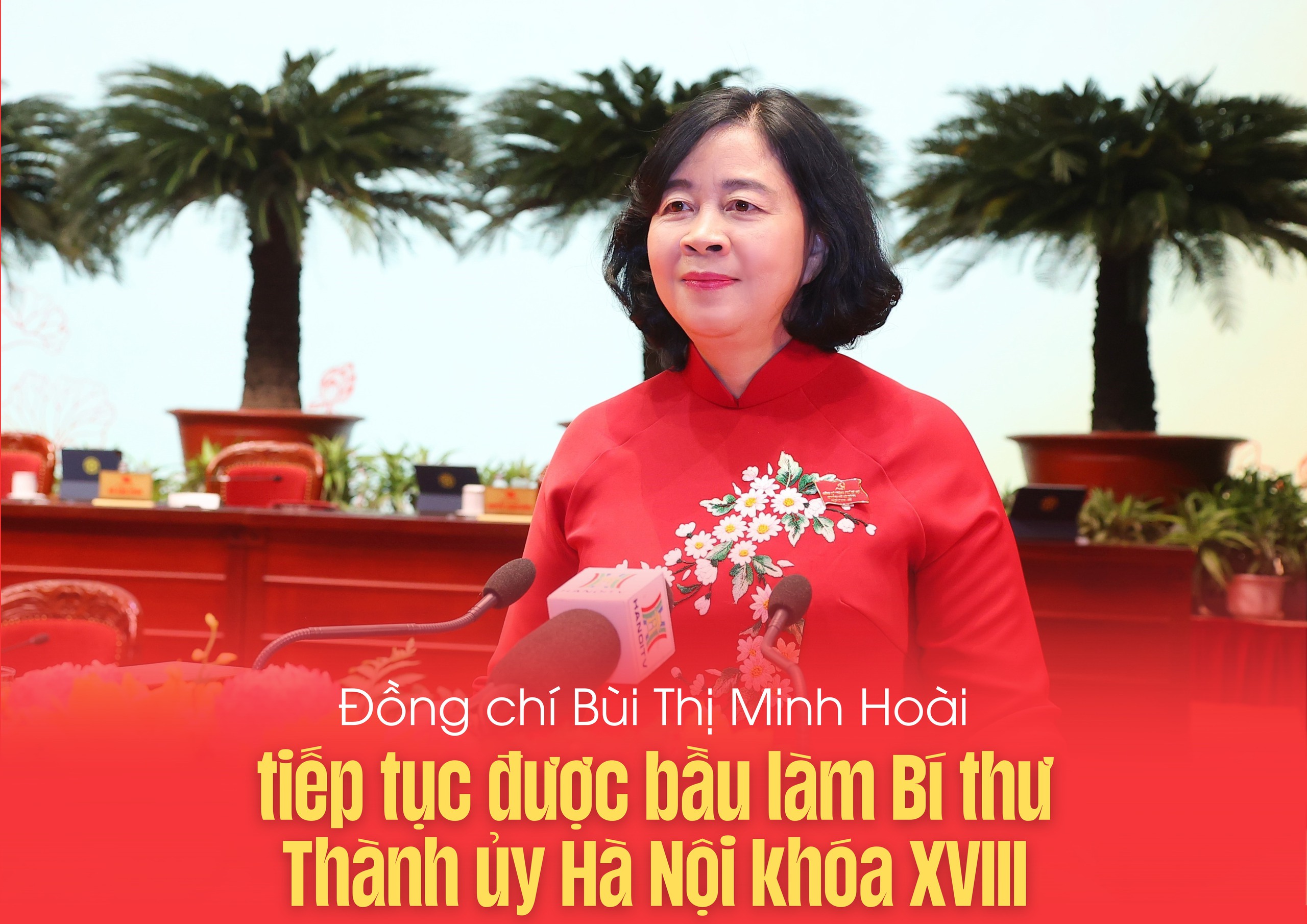 Trước đó, chiều 16/10, Đại hội đã tiến hành bầu 75 đồng chí vào Ban Chấp hành Đảng bộ thành phố Hà Nội khóa XVIII với số phiếu tập trung, tỷ lệ cao. Đồng chí Bùi Thị Minh Hoài, Ủy viên Bộ Chính trị, Bí thư Thành ủy Hà Nội khóa XVII đã trúng cử với số phiếu cao nhất 99,27%.