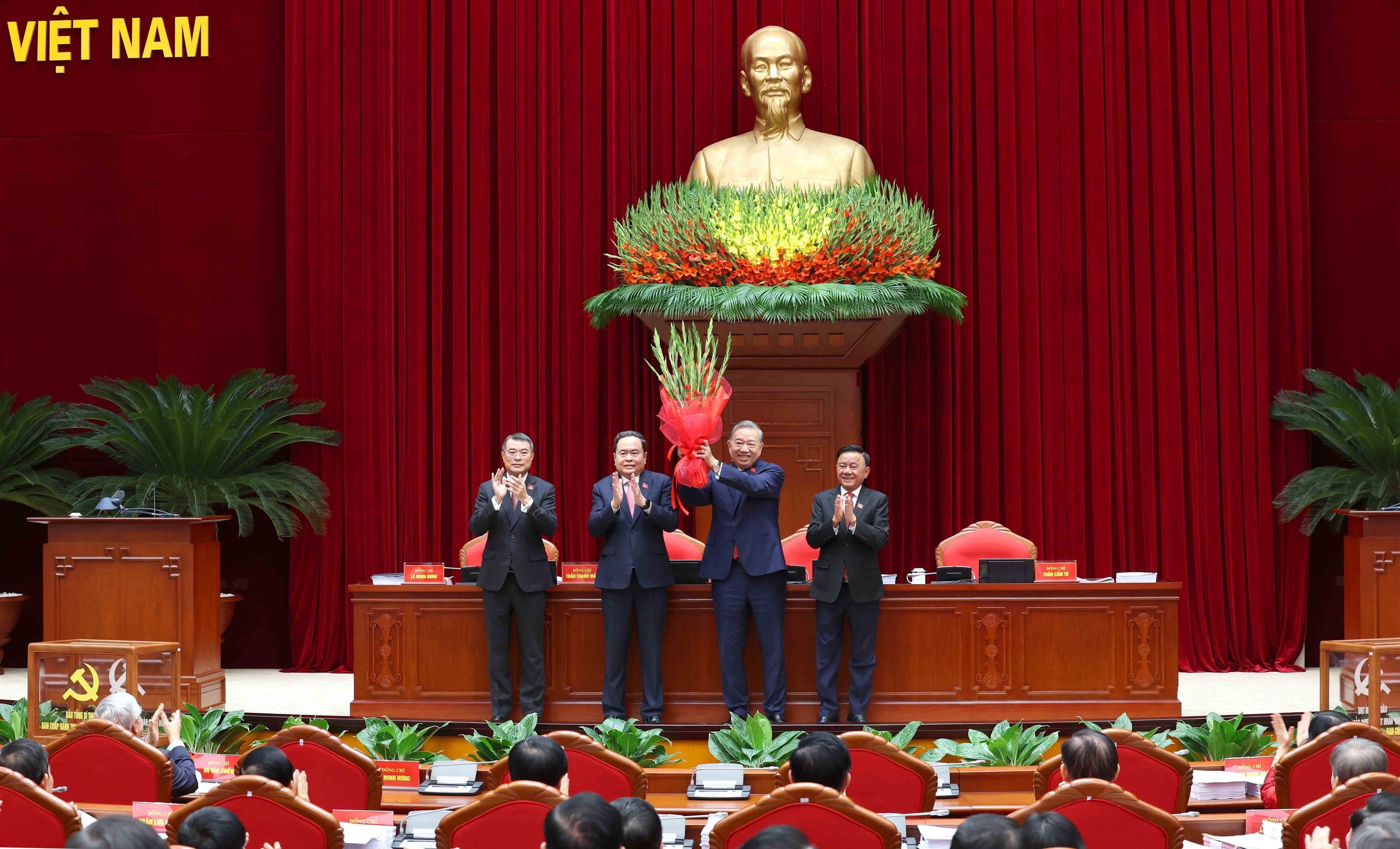 Ban Chấp hành Trung ương Đảng khoá XIV thống nhất tuyệt đối bầu đồng chí Tô Lâm, Tổng Bí thư Ban Chấp hành Trung ương Đảng khoá XIII tiếp tục giữ chức Tổng Bí thư Ban Chấp hành Trung ương Đảng khoá XIV. Ảnh: TTXVN