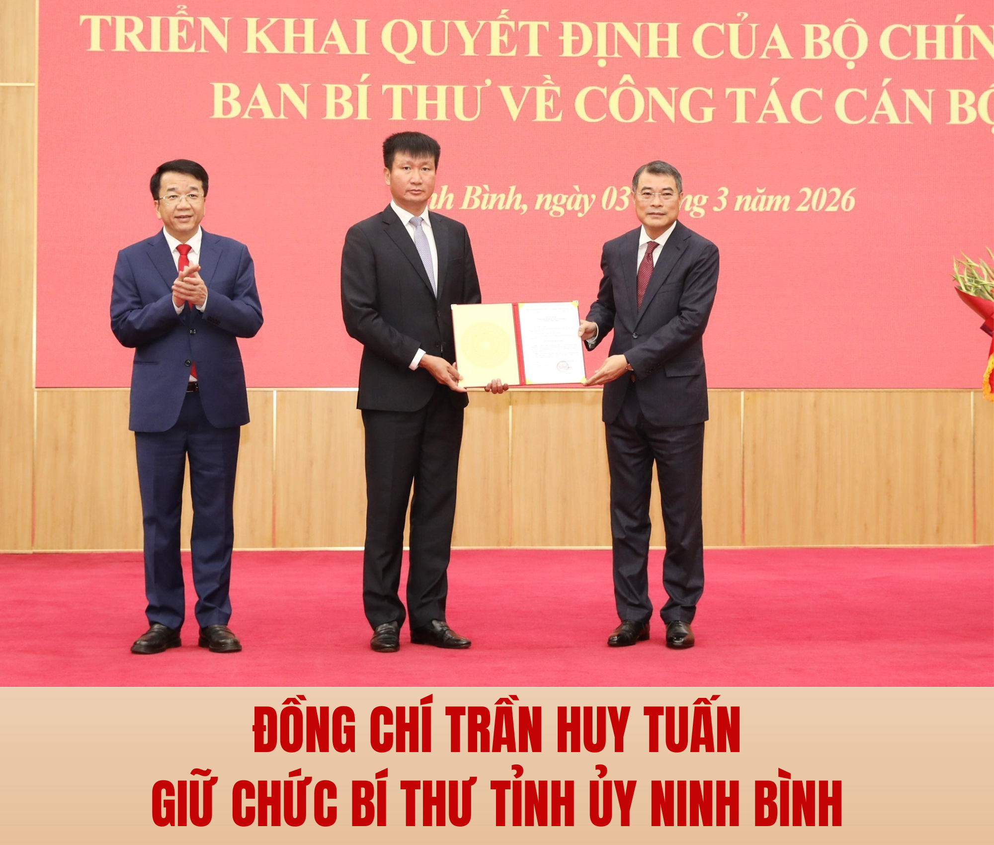 Đại diện Ban Tổ chức Trung ương đã công bố Quyết định của Bộ Chính trị quyết định chuẩn y đồng chí Trần Huy Tuấn, Ủy viên Trung ương Đảng, Phó Bí thư Tỉnh ủy, Chủ tịch UBND tỉnh Ninh Bình giữ chức Bí thư Tỉnh ủy Ninh Bình nhiệm kỳ 2025-2030, chỉ định tham gia Đảng ủy Quân khu 3, nhiệm kỳ 2025-2030. Quyết định của Ban Bí thư về việc đồng chí Nguyễn Thanh Bình, Phó Bí thư Tỉnh ủy Thái Nguyên thôi tham gia Ban Chấp hành, Ban Thường vụ, thôi giữ chức Phó Bí thư Tỉnh ủy Thái Nguyên nhiệm kỳ 2025-2030, điều động, chỉ định tham gia Ban Chấp hành, Ban Thường vụ, giữ chức Phó Bí thư Tỉnh ủy Ninh Bình, nhiệm kỳ 2025-2030. Đồng chí Nguyễn Thanh Bình được giới thiệu để HĐND tỉnh Ninh Bình bầu giữ chức Chủ tịch UBND tỉnh Ninh Bình nhiệm kỳ 2021-2026 thay đồng chí Trần Huy Tuấn.