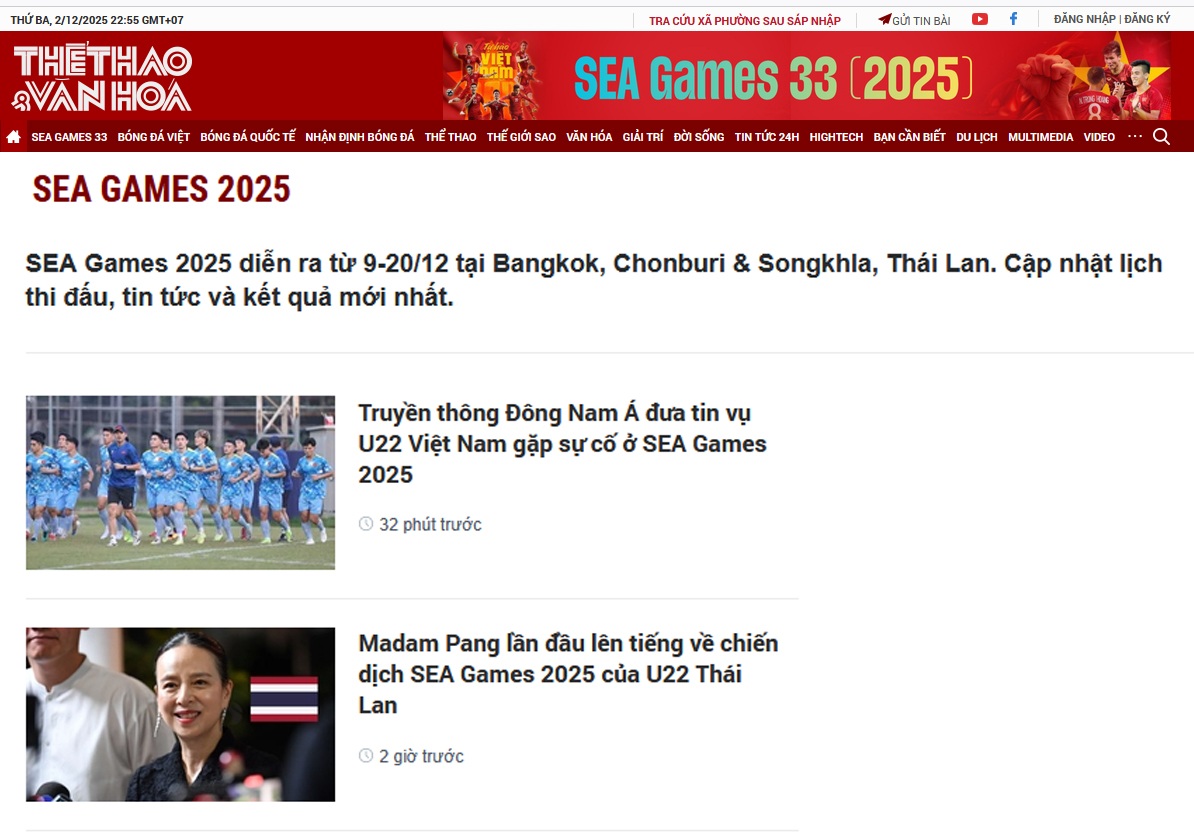Chuyên mục SEA Games 2025 trên báo điện tử Thethaovanhoa.vn