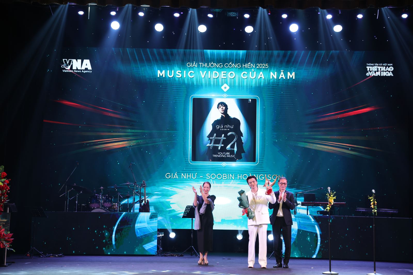 Tiến sĩ Ngô Phương Lan, Chủ tịch Hiệp hội Xúc tiến Phát triển Điện ảnh Việt Nam và Nhà báo Đinh Trọng Tuấn trao giải "Music Video của năm" cho SOOBIN tại Cống hiến 2026