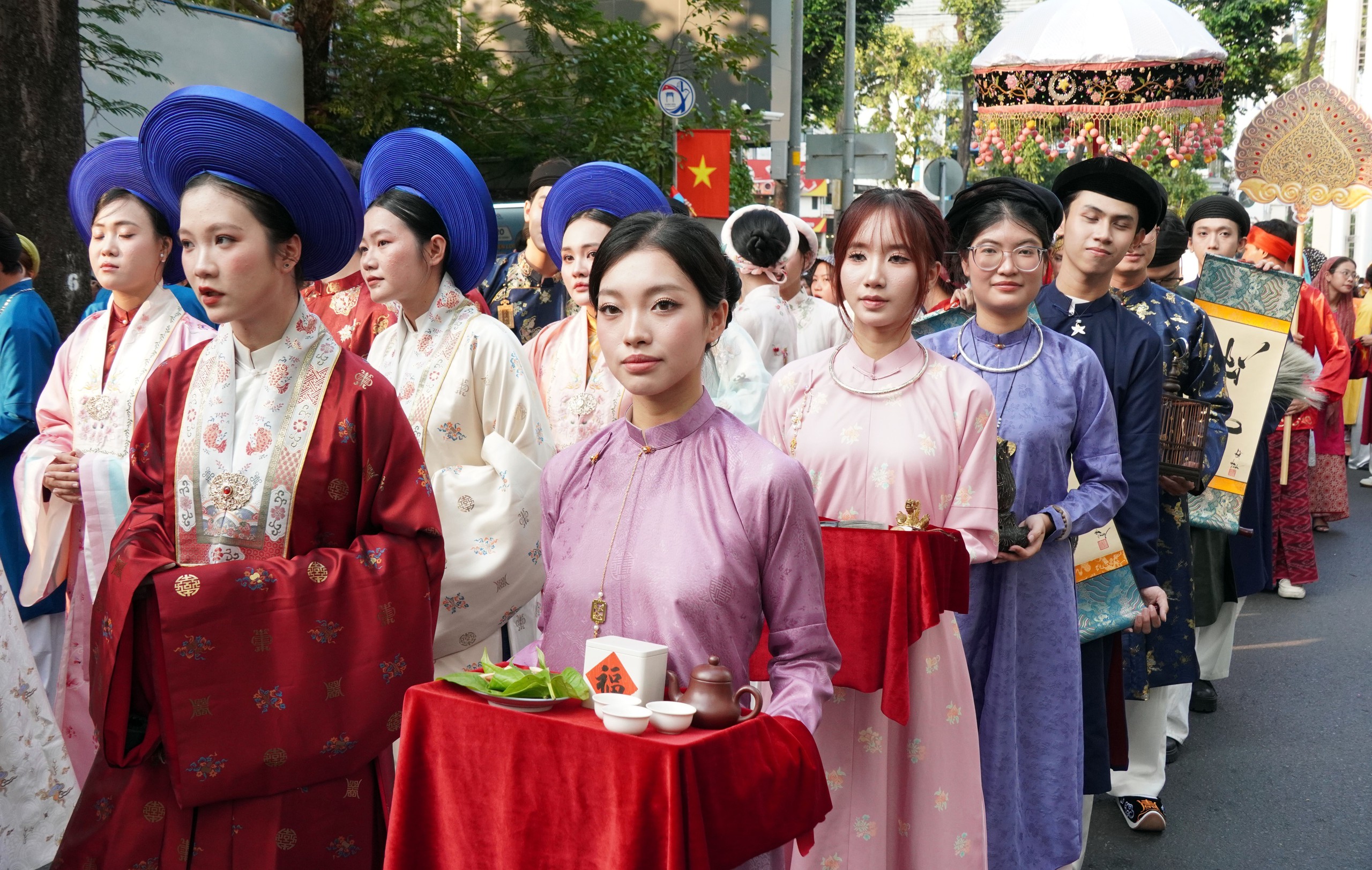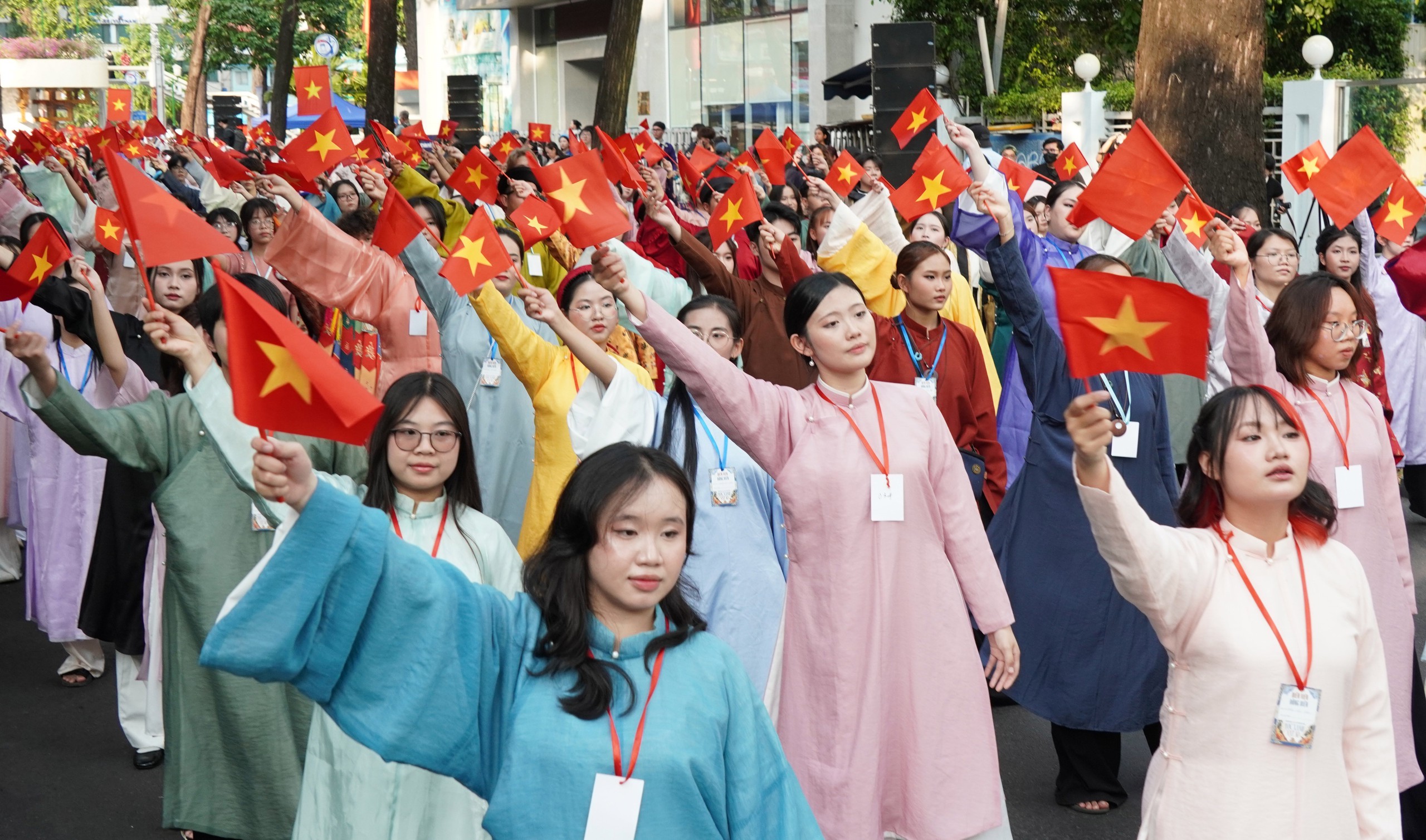 Gần 1.000 đoàn viên, thanh niên cùng các đơn vị đồng hành tham gia đồng diễn Ngày hội Việt phục “Tóc xanh vạt áo” năm 2026 chiều 21/3/2026 trên các tuyến đường Võ Văn Tần, Pasteur và Công viên Phan Đình Phùng (phường Xuân Hoà, Thành phố Hồ Chí Minh)