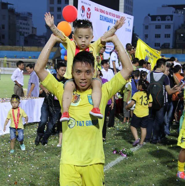 Ngọc Duy cùng con trai trong ngày vô địch V-League. Ảnh: V.S.I