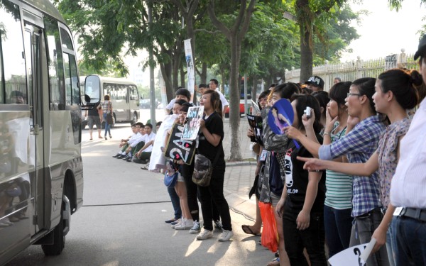 Không khí nóng bức đầu mùa hè dường như không ngăn cản sự cuồng nhiệt của các bạn trẻ với sức hút từ 2AM. Từ 15h đã có khoảng 150 fan “túc trực” sẵn tại cửa vào SVĐ để chờ mong được gặp 4 chàng trai Jo-Kwon, Chang-Min Lee, Jin-Won Chung và Seul-Ong Lim.
