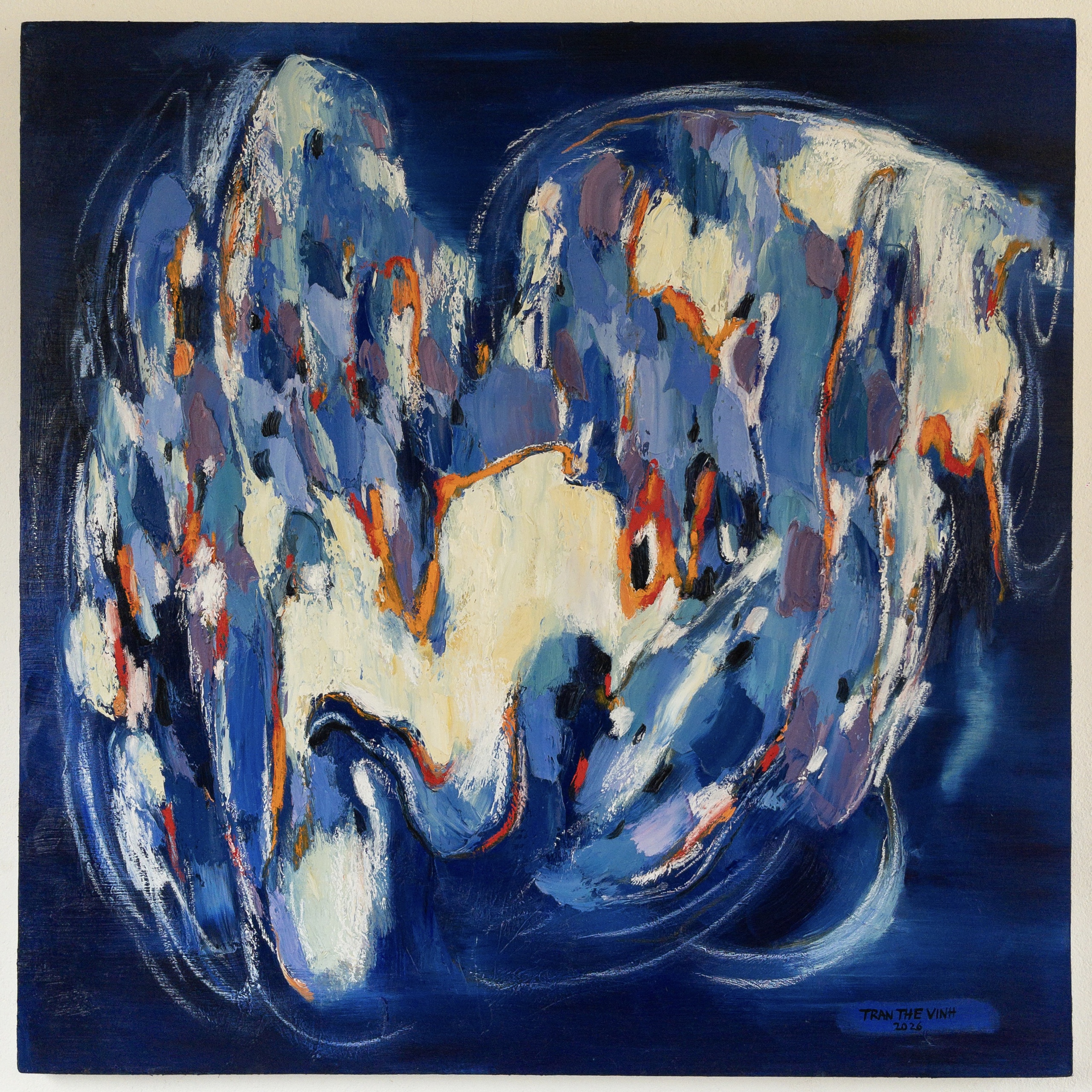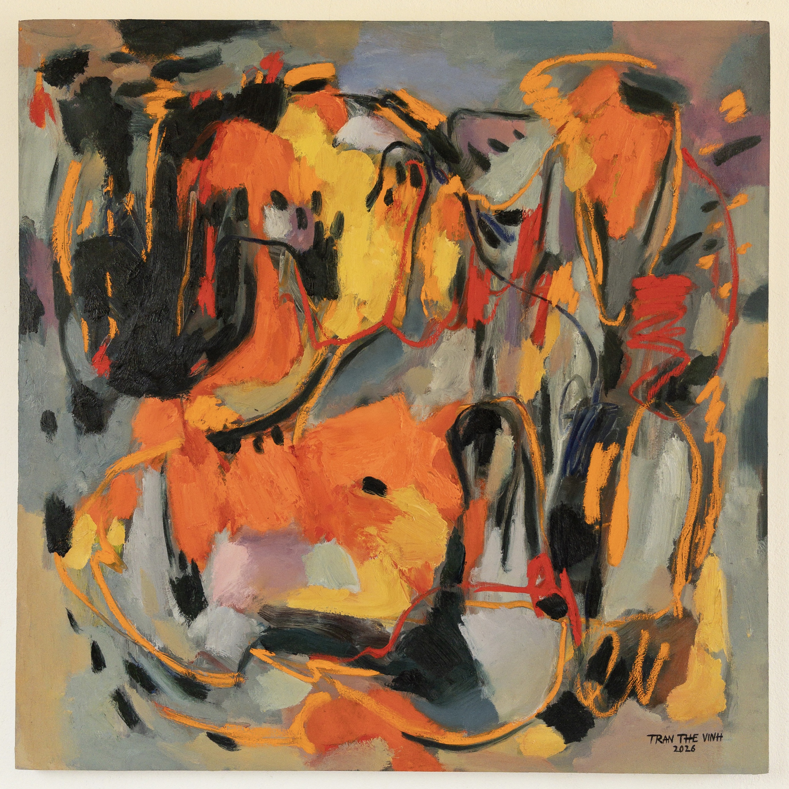 Với Trần Thế Vĩnh, trải nghiệm lại được chuyển hóa theo một cách giàu tính cảm xúc và nhạc tính. Những cuộc gặp gỡ trong hành trình, từ khúc hát ru của người Cờ Ho trên Lang Biang đến không gian tĩnh lặng của Đan viện Châu Sơn… đã trở thành nguồn cảm hứng cho các tác phẩm như Lời ru, Lời thiêng trên đồi cao hay Đức tin vĩnh cửu. Trong tranh, ký ức không hiện ra như hình ảnh cụ thể, mà như những lớp màu chuyển động, mang nhịp điệu của âm thanh, của niềm tin và của những rung động tinh thần sâu kín.