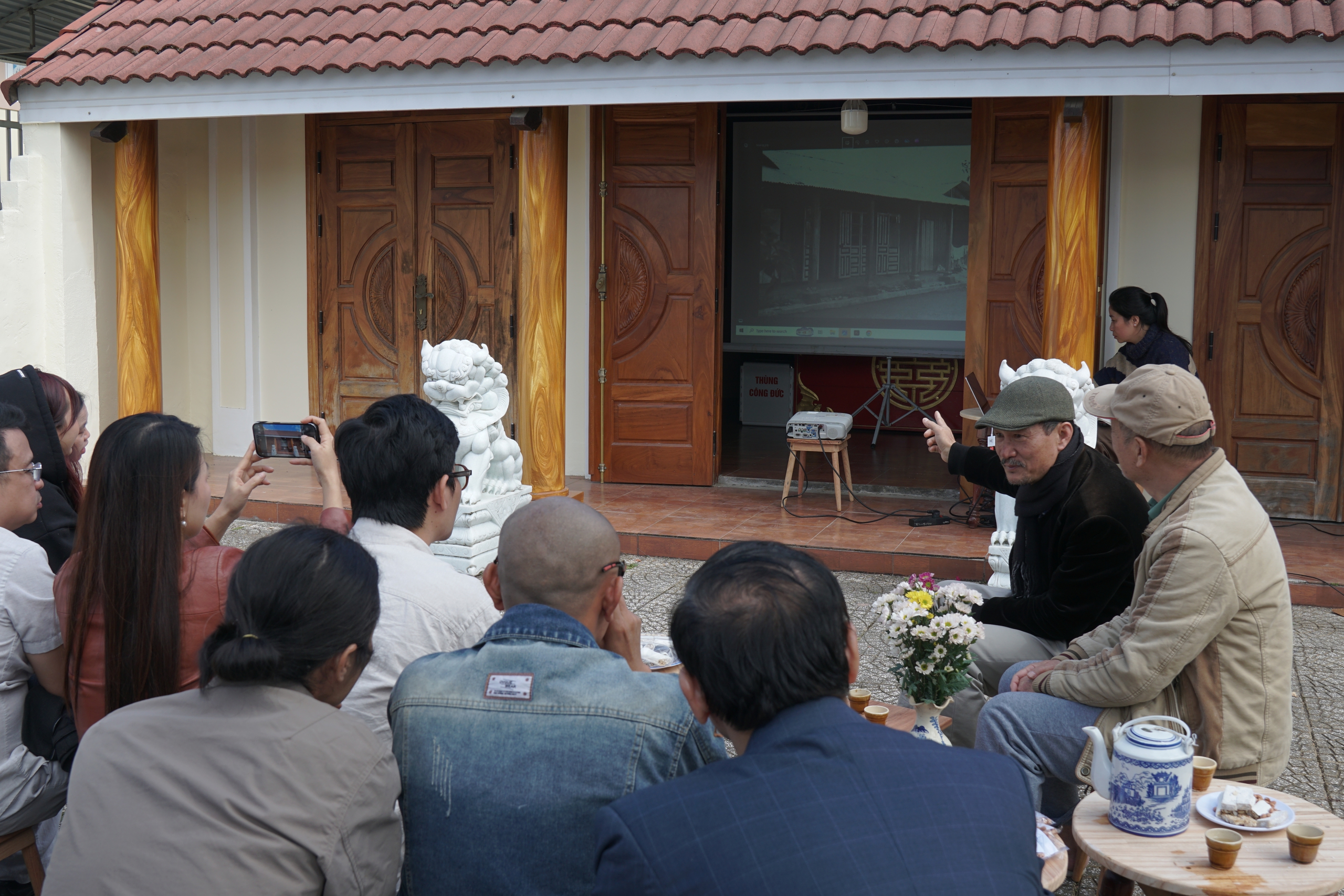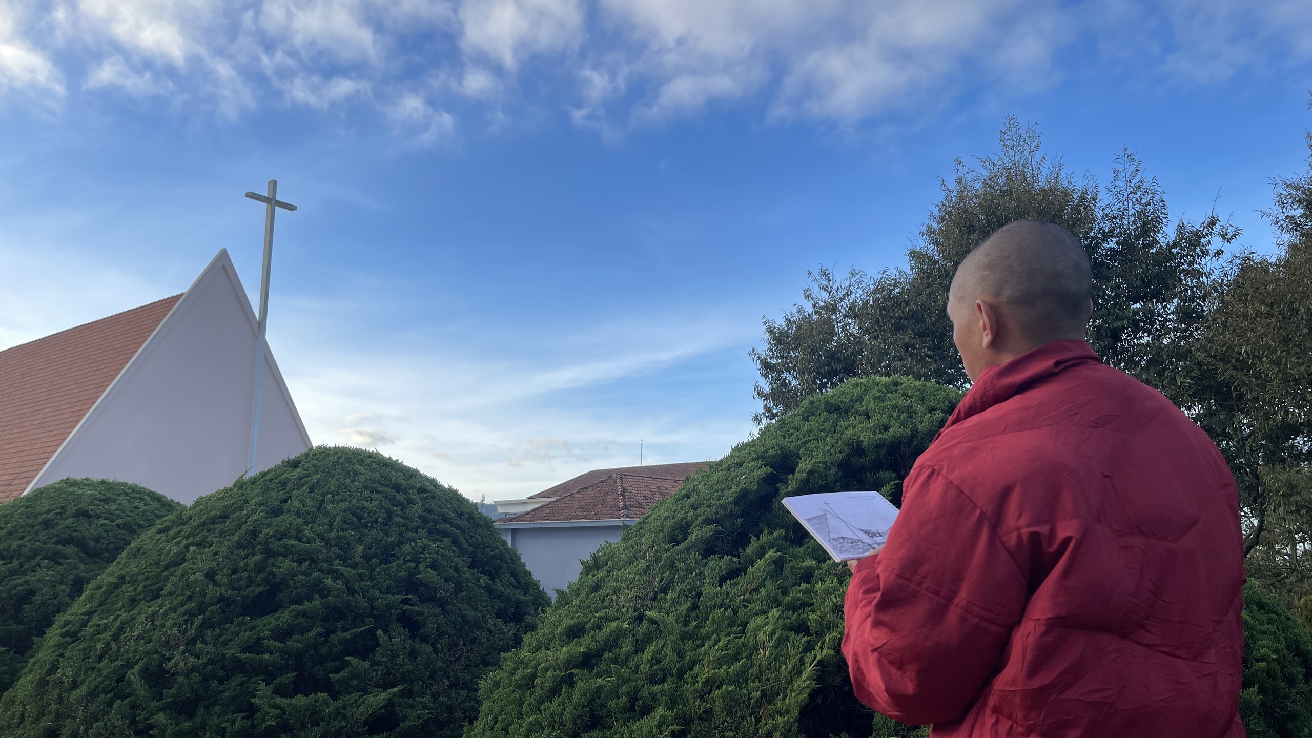 Vì thế, câu trả lời không được tìm trong không gian khép kín của xưởng vẽ, mà nằm trong những chuyển động của đời sống. Các nghệ sĩ đã đi qua nhiều không gian khác nhau: từ những buổi tĩnh tâm tại Đan viện Châu Sơn - nơi nhịp sống chậm lại để mở ra chiều sâu tinh thần; đến những cuộc gặp gỡ với cộng đồng bản địa trên cao nguyên Lang Biang, nơi ký ức được truyền trao qua tiếng hát và đời sống thường nhật; rồi những cuộc trò chuyện tại làng Hà Đông, nơi những cư dân di cư từ miền Bắc mang theo ký ức và kinh nghiệm canh tác để hình thành một cộng đồng mới giữa cao nguyên.