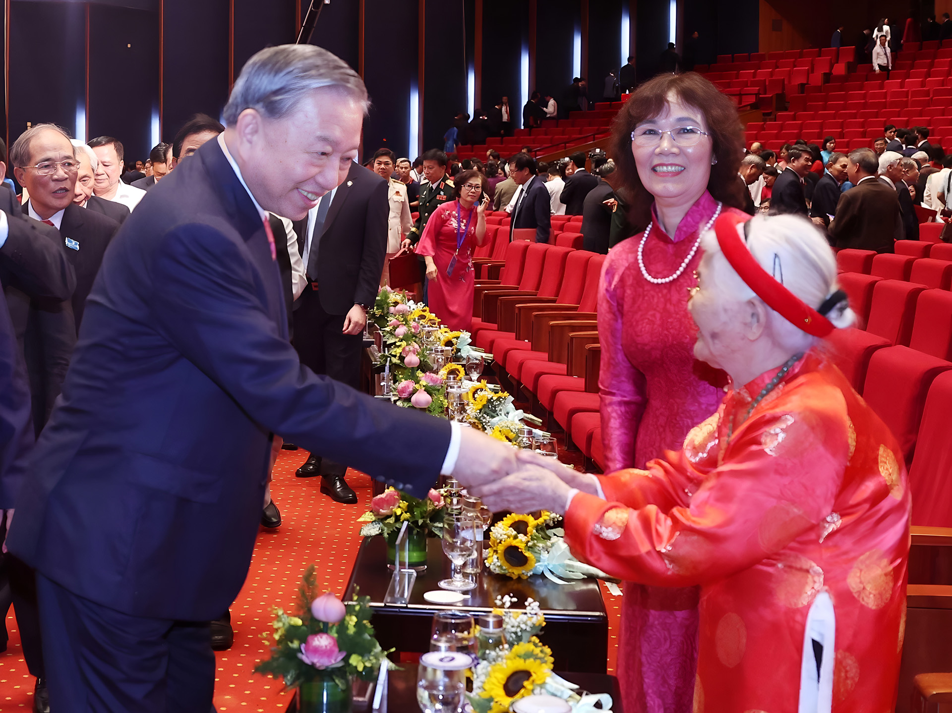 Tổng Bí thư Tô Lâm với Mẹ Việt Nam Anh hùng tại Đại hội