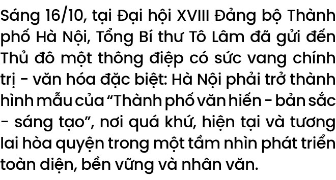 Hà Nội không chỉ là trung tâm chính trị - hành chính quốc gia, mà phải trở thành Thủ đô của niềm tin, của hành động và của tương lai - nơi văn hóa mở đường, thể chế dẫn lối, con người làm chủ công cuộc đổi mới.