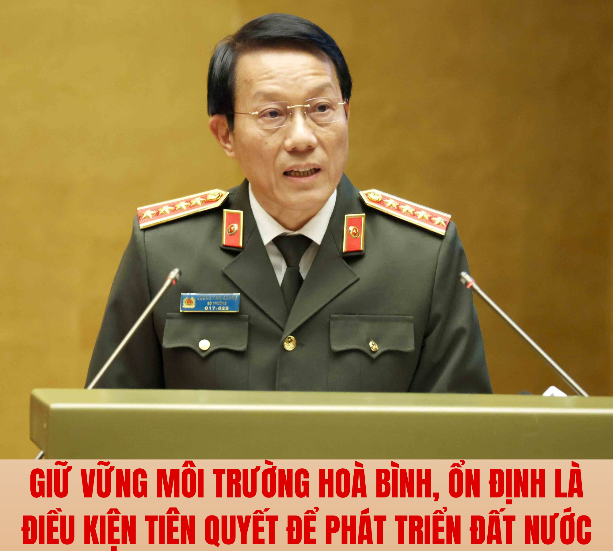 Đại tướng Lương Tam Quang nhấn mạnh: "Lấy phát triển để ổn định, ổn định để phát triển nhanh, bền vững" là "sợi chỉ đỏ" xuyên suốt tư duy an ninh quốc gia trong kỷ nguyên mới. Văn kiện nhiều kỳ Đại hội đều nhấn mạnh quan điểm ổn định để phát triển, phát triển để ổn định. So với các kỳ Đại hội trước đây, Đại hội XIV của Đảng có bước phát triển đột phá về tư duy khi lần đầu tiên đưa thành tố "phát triển" lên trước "ổn định"; nội dung "Lấy phát triển để ổn định, ổn định để phát triển" được đề cập trong cả bài học kinh nghiệm, quan điểm chỉ đạo và nhiệm vụ, giải pháp.