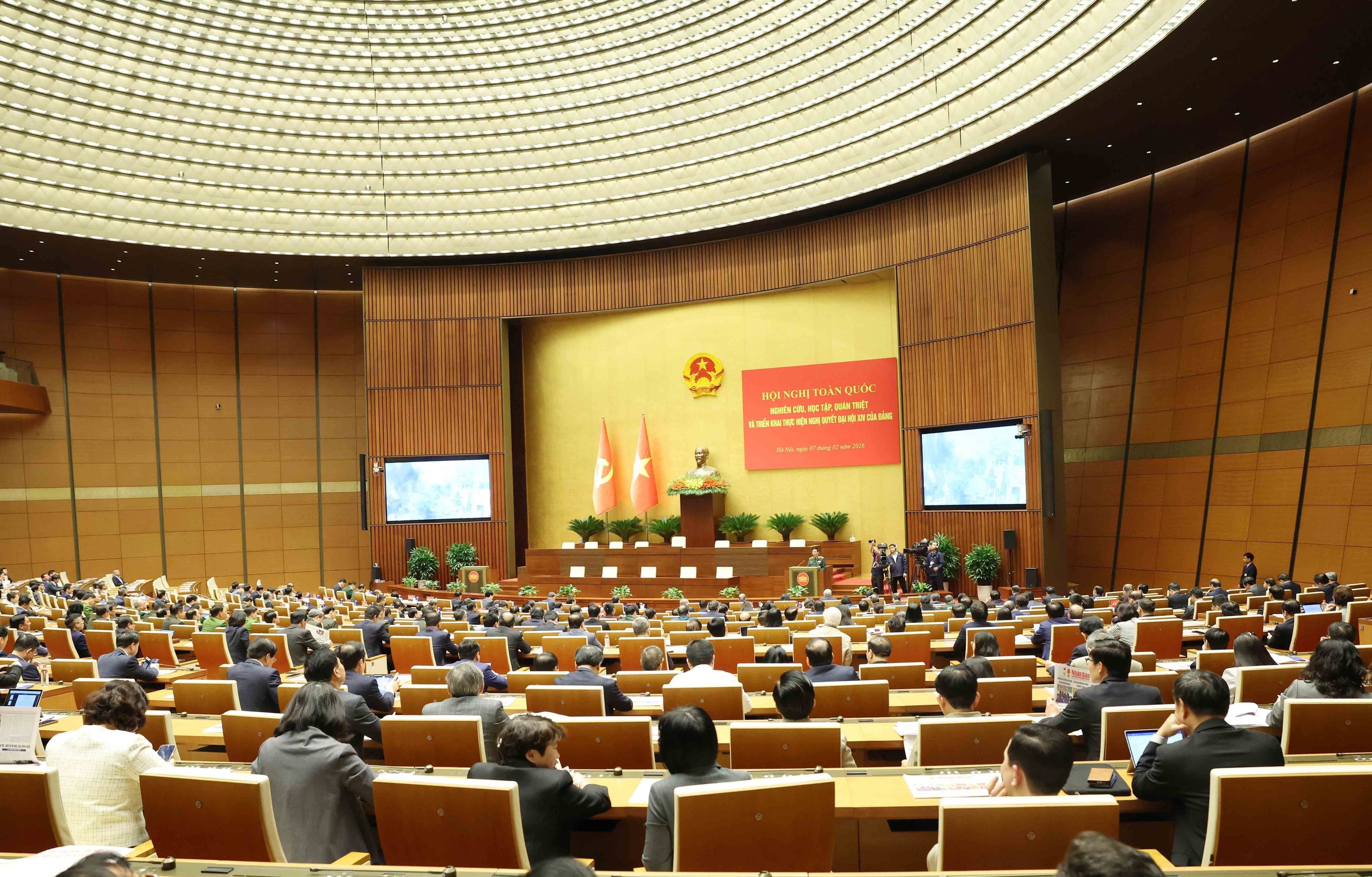 Sáng 7/2, tại Hà Nội, Bộ Chính trị, Ban Bí thư Trung ương Đảng tổ chức Hội nghị toàn quốc nghiên cứu, học tập, quán triệt và triển khai thực hiện Nghị quyết Đại hội XIV của Đảng.