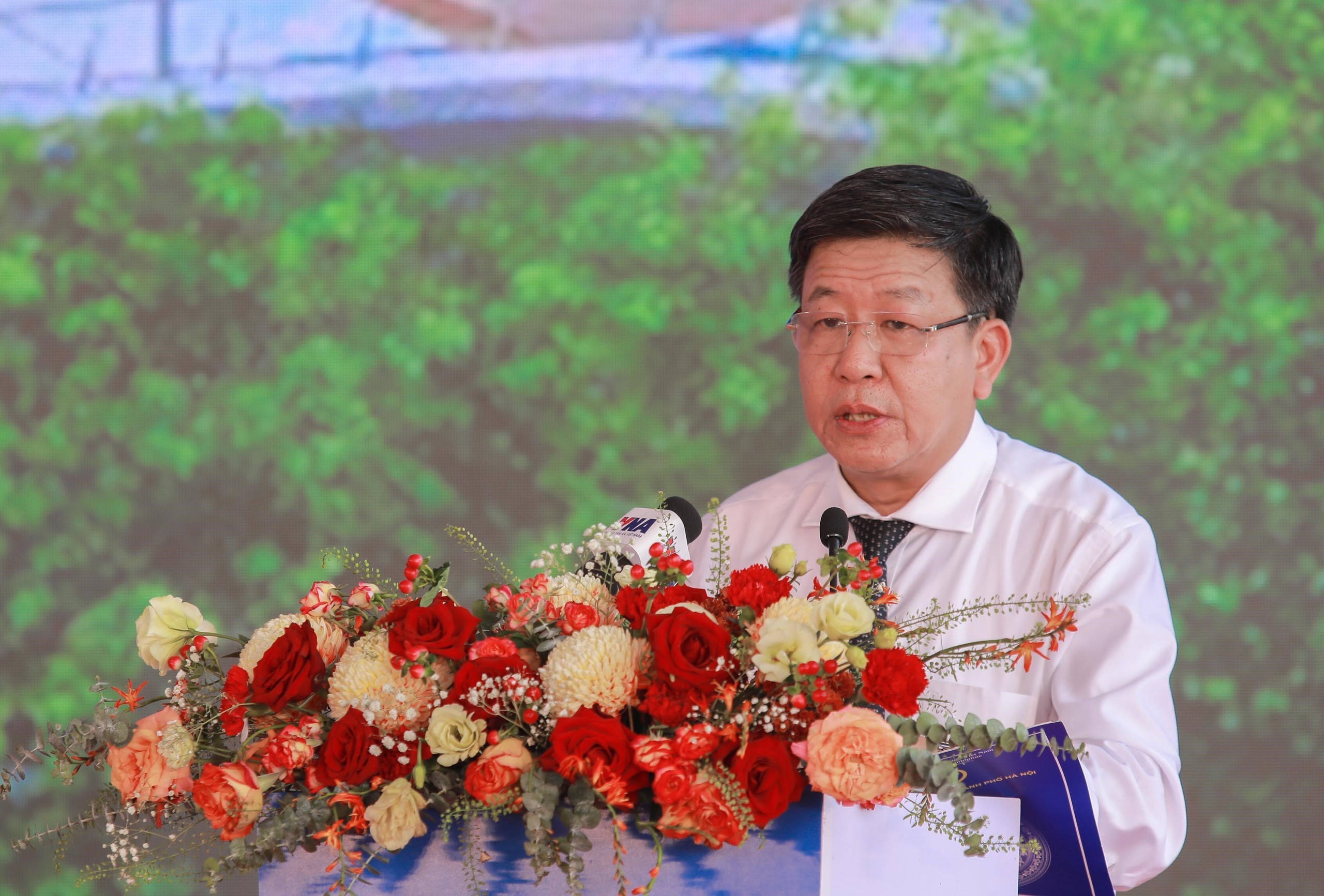 Phó Chủ tịch UBND thành phố Hà Nội Dương Đức Tuấn phát biểu tại lễ khởi công. Ảnh: Phan Phương - TTXVN