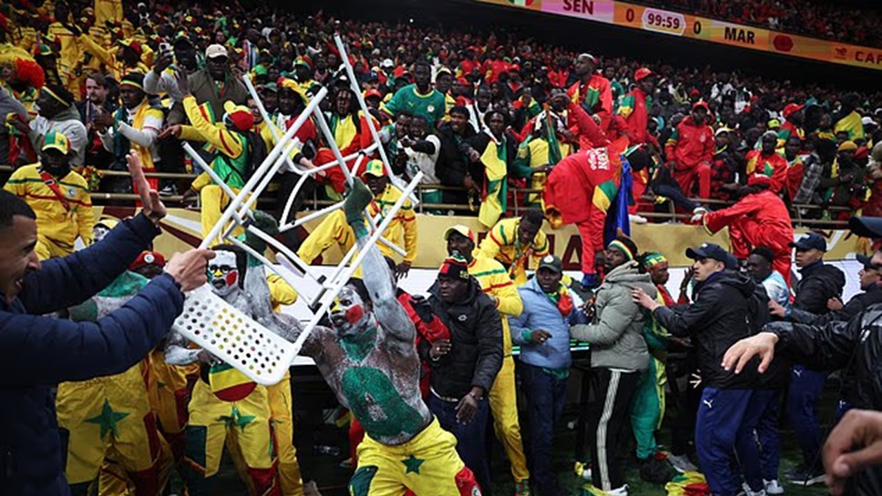Cho rằng trọng tài xử lý thiếu công bằng, HLV Pape Thiaw yêu cầu các học trò rời sân để phản đối. Sadio Mane đã cố gắng giữ các đồng đội ở lại, song bất thành. Căng thẳng nhanh chóng leo thang khi một bộ phận cổ động viên Senegal tràn xuống mặt sân, buộc lực lượng an ninh phải can thiệp để kiểm soát tình hình. Trận đấu bị gián đoạn trong thời gian dài, khiến không khí chung kết trở nên nặng nề và hỗn loạn.