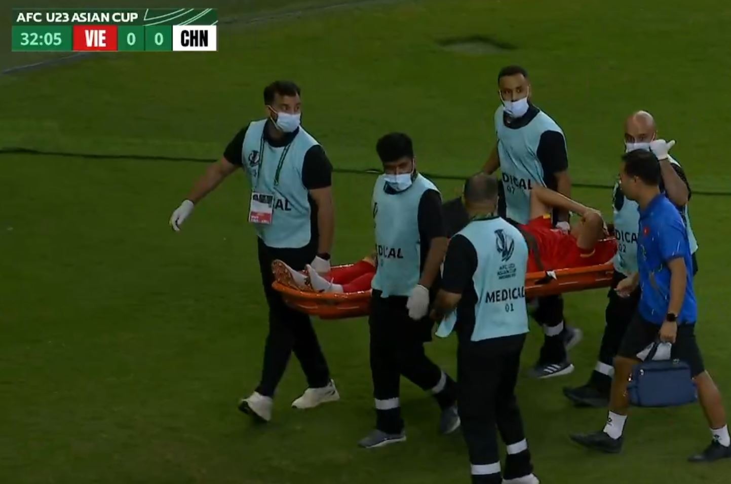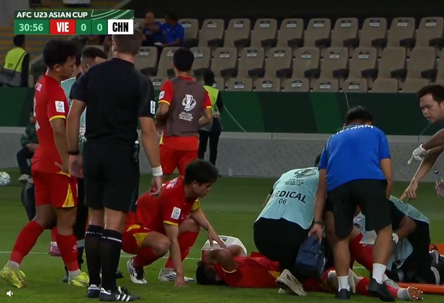 Tuy nhiên, tin buồn cho U23 Việt Nam là Hiểu Minh không thể tiếp tục thi đấu và phải rời sân bằng cáng. Trung vệ của U23 Việt Nam đã không giấu được những giọt nước mắt khi không thể tiếp tục thi đấu.