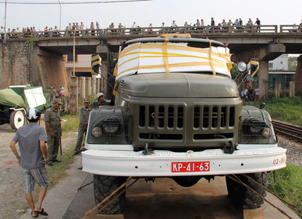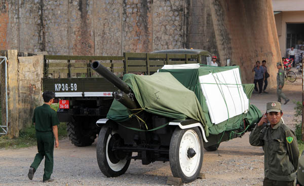 Đoàn xe này thuộc Ban Tang lễ Quốc gia phía Nam đóng tại TP HCM và được đoàn tàu đặc biệt chở ra từ chiều tối 8/10. Trong đó, xe linh xa có khẩu pháo 122 mm ở phía sau dùng để chở linh cữu Đại tướng, 14 ô tô sẽ chở các chiến sĩ trong đội tiêu binh phục vụ tang lễ.