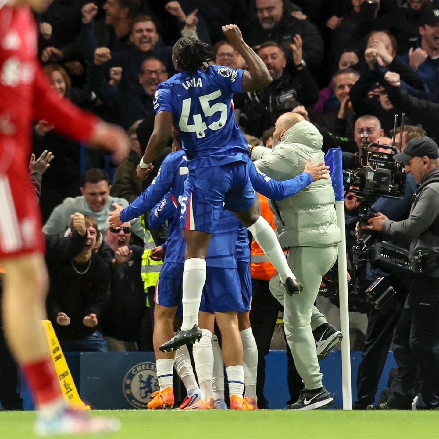Khoảnh khắc ấy khiến toàn bộ cầu trường bùng nổ. Estevao trượt gối ăn mừng ở góc sân, các đồng đội ùa đến chia vui, còn HLV Enzo Maresca không thể kiềm chế cảm xúc. Truyền hình ghi lại hình ảnh chiến lược gia người Ý lao dọc đường biên để chia vui cùng các học trò, giơ nắm đấm hướng về khán đài Stamford Bridge – một hình ảnh khiến người hâm mộ liên tưởng ngay đến Jose Mourinho năm 2004, khi ông chạy dọc sân Old Trafford để ăn mừng bàn thắng của Porto trước Man United.