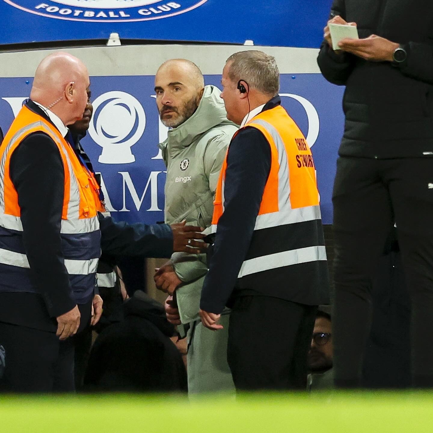 Tuy nhiên, niềm vui của Maresca không kéo dài lâu. Do đã nhận thẻ vàng trước đó vì phản ứng với trọng tài về pha kiểm tra VAR, ông bị trọng tài Anthony Taylor rút thẻ vàng thứ hai, đồng nghĩa với việc phải rời khu kỹ thuật. Đây đã là thẻ đỏ thứ tư của Chelsea trong 5 trận gần nhất, sau Robert Sanchez, Trevoh Chalobah và Joao Pedro.