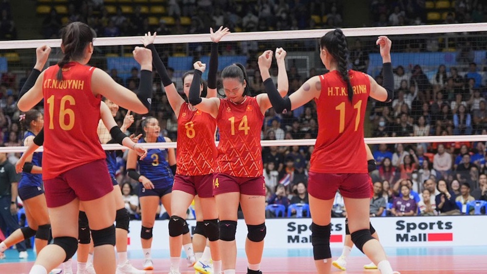 ĐT bóng chuyền nữ Việt Nam thi đấu ngang ngửa với tuyển Thái Lan ở chung kết SEA Games 2025. Ảnh: VFV