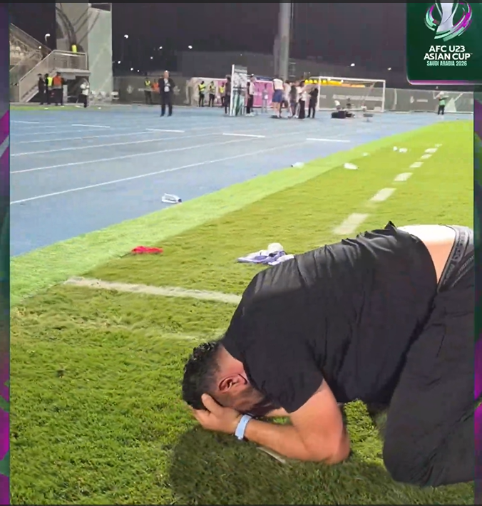 HLV Omar Najhi của U23 Jordan đã bật khóc ngay trên sân khi nghe tin U23 Việt Nam thắng U23 Saudi Arabia.
