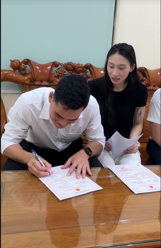 Chủ công bóng chuyền Phạm Thị Nguyệt Anh và cựu VĐV điền kinh Quách Công Lịch đã đăng ký kết hôn sau thời gian hẹn hò kín tiếng. VĐV Nguyệt Anh mới đây đã chia sẻ video ký giấy đăng ký kết hôn trên Tiktok với dòng trạng thái: "Chữ ký đặc biệt nhất của chúng ta"