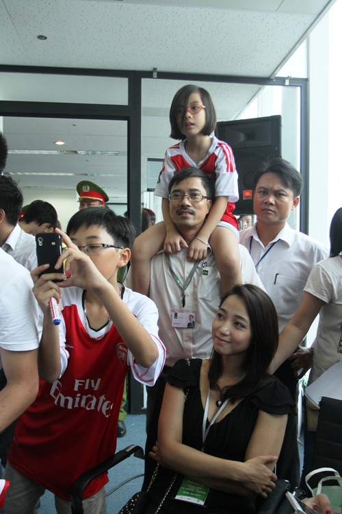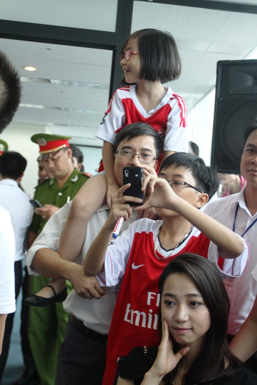 Quá đông người hâm mộ nên tình trạng chen lấn là không tránh khỏi. Dù khá vất vả, Thùy Linh cũng đã có được chữ kí của Mikel Arteta.