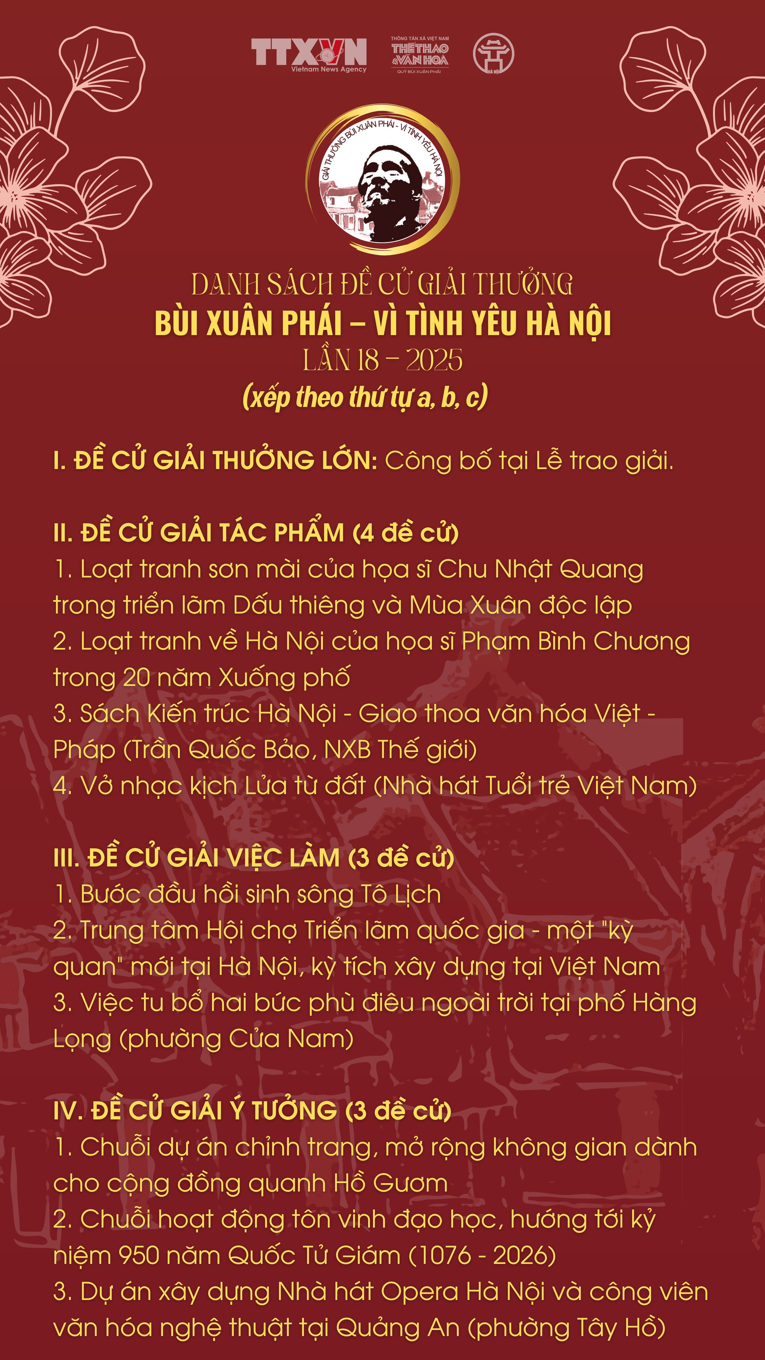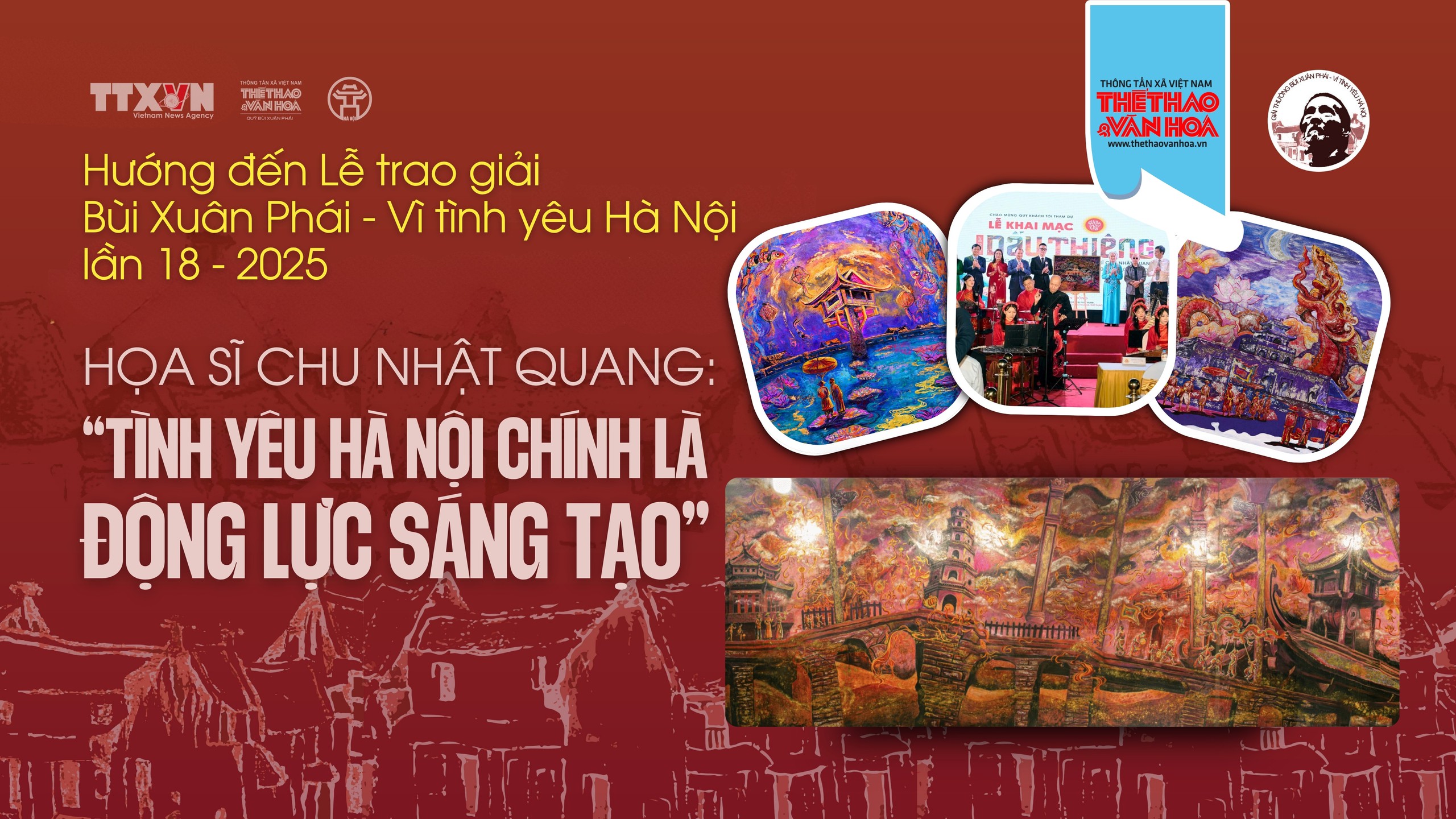 Chính từ những tình cảm đặc biệt như thế, 2 triển lãm sơn mài khổ lớn Dấu thiêng và Mùa Xuân độc lập của Chu Nhật Quang đã được đề cử Giải thưởng Bùi Xuân Phái - Vì tình yêu Hà Nội lần 18 - 2025 ở hạng mục Tác phẩm.