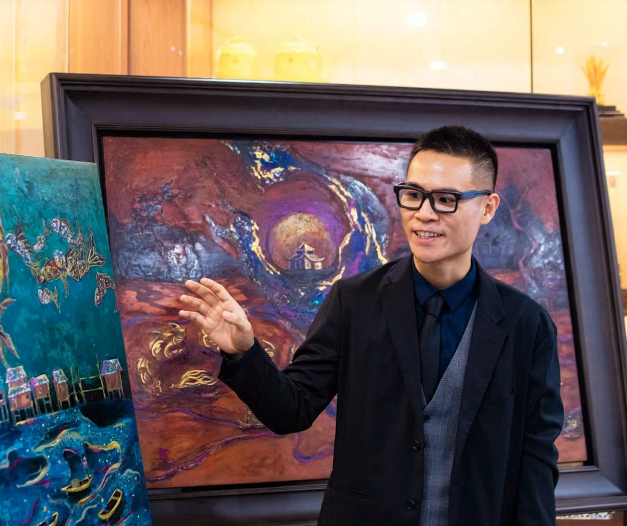 Không chỉ dừng lại ở nền tảng truyền thống gia đình, chính những trải nghiệm trong học tập ở nước ngoài cũng khiến Quang nhận rõ giá trị của di sản. "Trong chương trình học, sơn mài chỉ được nhắc đến thoáng qua, chủ yếu dưới dạng chất liệu trang trí. Nhưng khi tôi nói về rối nước, về tranh sơn mài Việt Nam, bạn bè và cả thầy cô đều vô cùng tò mò, thích thú, bởi họ ít biết, ít được tiếp cận. Lúc ấy, tôi càng thấm thía: sơn mài Việt Nam là một kho tàng khổng lồ, độc đáo, nhưng thế giới vẫn chưa biết đến nhiều. Và chính điều đó đã thúc đẩy tôi theo đuổi".