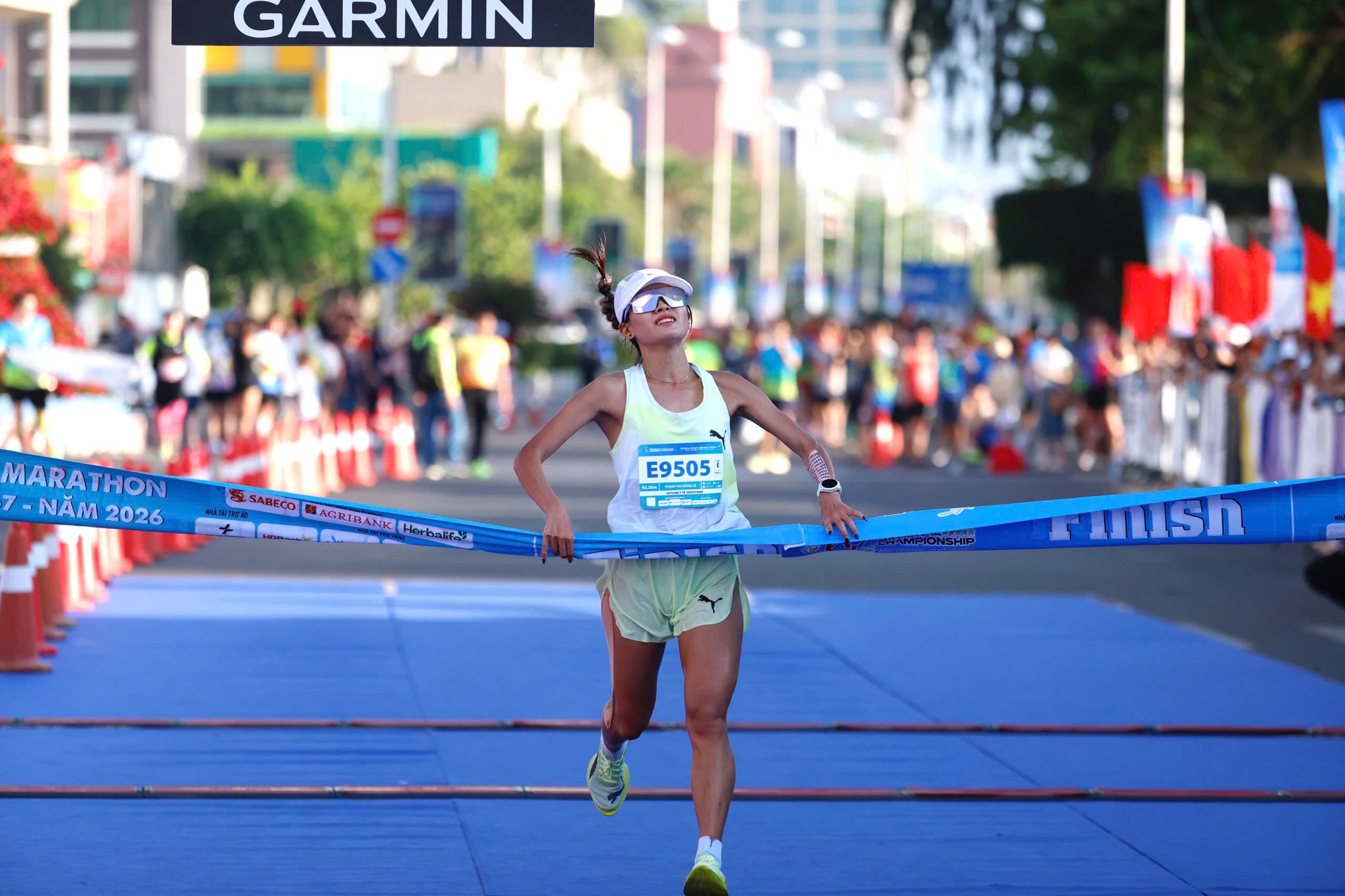 Ở nội dung nữ, Phạm Thị Hồng Lệ đã xuất sắc giành chức vô địch full marathon, tiếp tục khẳng định vị thế hàng đầu trong làng chạy bộ nữ Việt Nam. Kể từ khi Nguyễn Thị Oanh xác nhận chỉ tham dự nội dung 5 km ở Tiền Phong Marathon 2026, Hồng Lệ đã được xem là ứng viên hàng đầu của nội dung full marathon nữ. Giải năm nay cũng chứng kiến màn cán đích đầy xúc động của ĐKVĐ Hoàng Thị Ngọc Hoa. Cô bị "đụng tường" ngay sát vạch đích nhưng vẫn nỗ lực bò qua chip time.