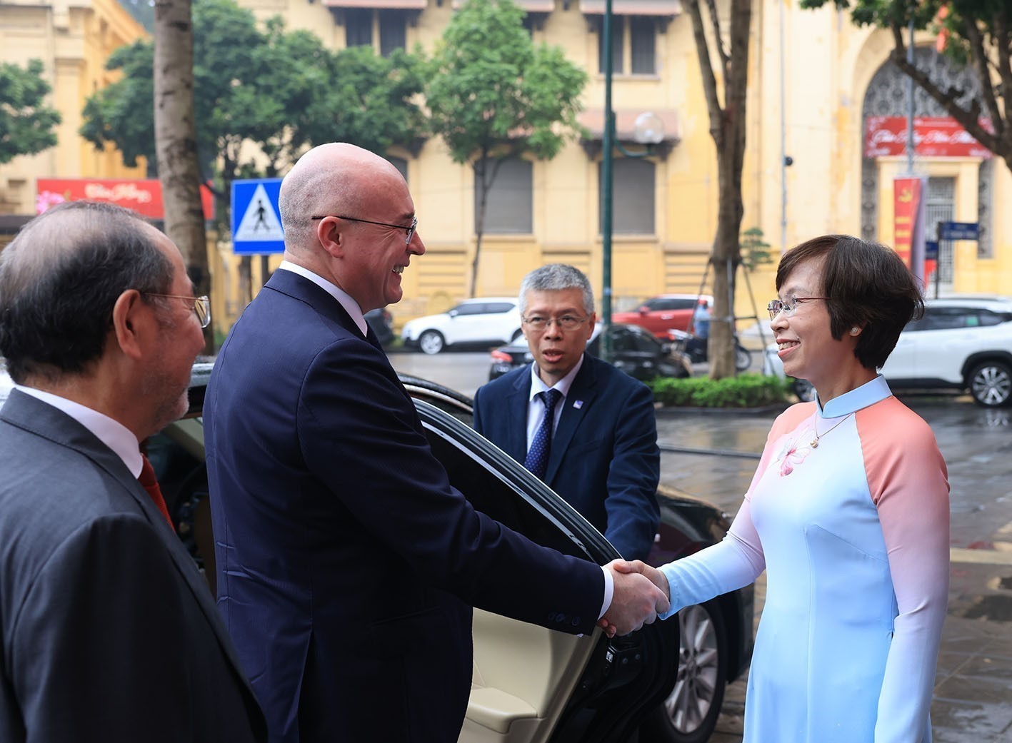 Tổng giám đốc TTXVN Vũ Việt Trang đón Tổng giám đốc Hãng thông tấn TASS (Liên bang Nga) Andrey Kondrashov