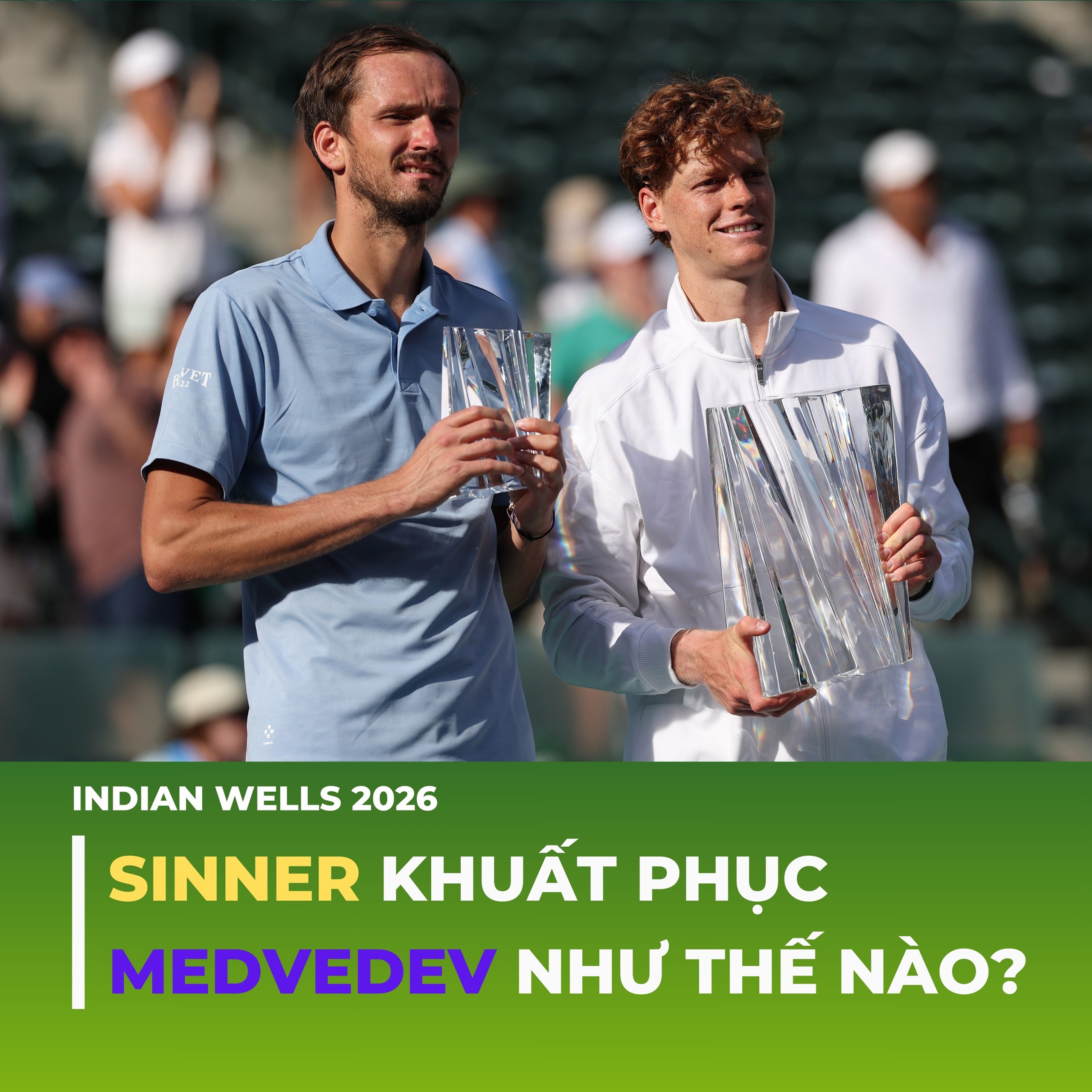 Trên sân trung tâm của Indian Wells Tennis Garden, Sinner cuối cùng đã nâng cao danh hiệu Indian Wells đầu tiên trong sự nghiệp. Nhưng để làm được điều đó, tay vợt người Ý phải giải được một bài toán cực khó: vượt qua Medvedev, một trong những tay vợt phòng ngự bền bỉ và lì lợm nhất thế giới quần vợt hiện đại.