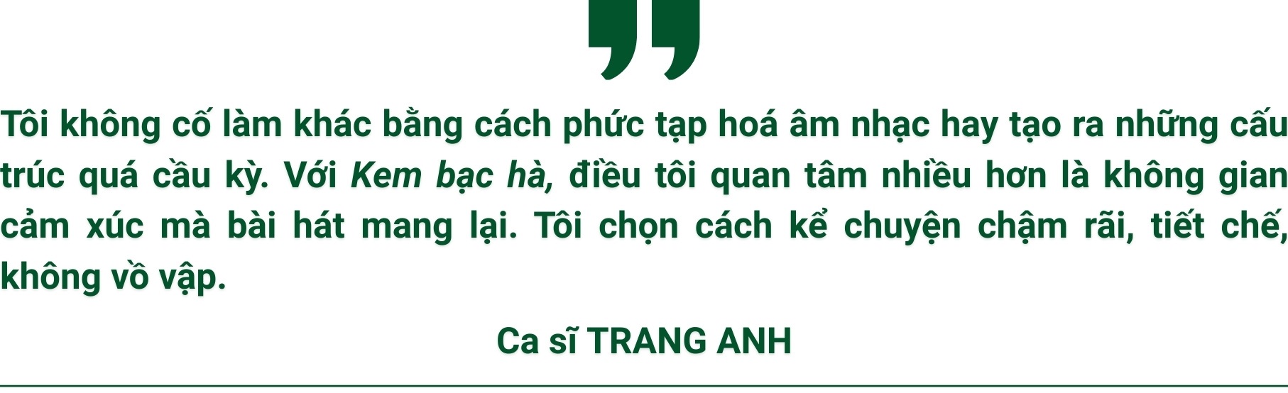 Chính cảm giác "cô đơn giữa đám đông" này cũng là một trong những điểm xuất phát để Trang Anh xây dựng thế giới cảm xúc cho Kem bạc hà. Không chỉ là câu chuyện của riêng cô, đó còn là lát cắt rất phổ biến của người trẻ trong đời sống hiện đại - ai cũng bận rộn, nhưng không phải lúc nào cũng tìm được một nơi đủ an toàn để nói ra những điều thật lòng.