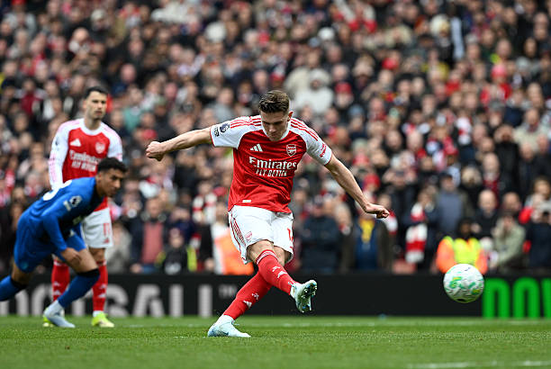 Sau khi nhận bàn thua, Arsenal vùng lên tấn công và tận dụng thành công ở phút 35. Sau khi Christie để bóng chạm tay trong vòng cấm, trọng tài cho đội chủ nhà hưởng phạt đền. Trên chấm 11m, Gyokeres thực hiện cú sút căng vào góc trái, đánh bại Petrovic, đưa trận đấu trở về thế cân bằng 1-1 trước khi hiệp một khép lại.