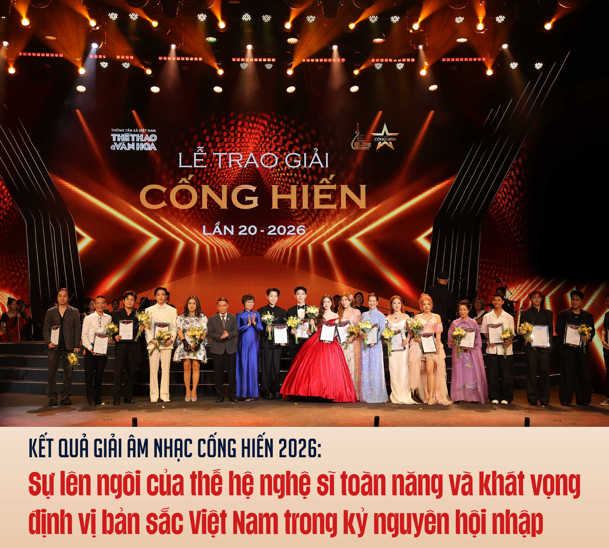 Danh sách chiến thắng của Giải Âm nhạc Cống hiến 2026 đã họa nên một bức tranh đầy tự hào về nền nghệ thuật biểu diễn nước nhà. Các nghệ sĩ vinh danh năm nay đều chứng minh được năng lực làm chủ kỹ thuật cá nhân, tư duy sản xuất hiện đại và một ý thức sâu sắc về trách nhiệm công dân.