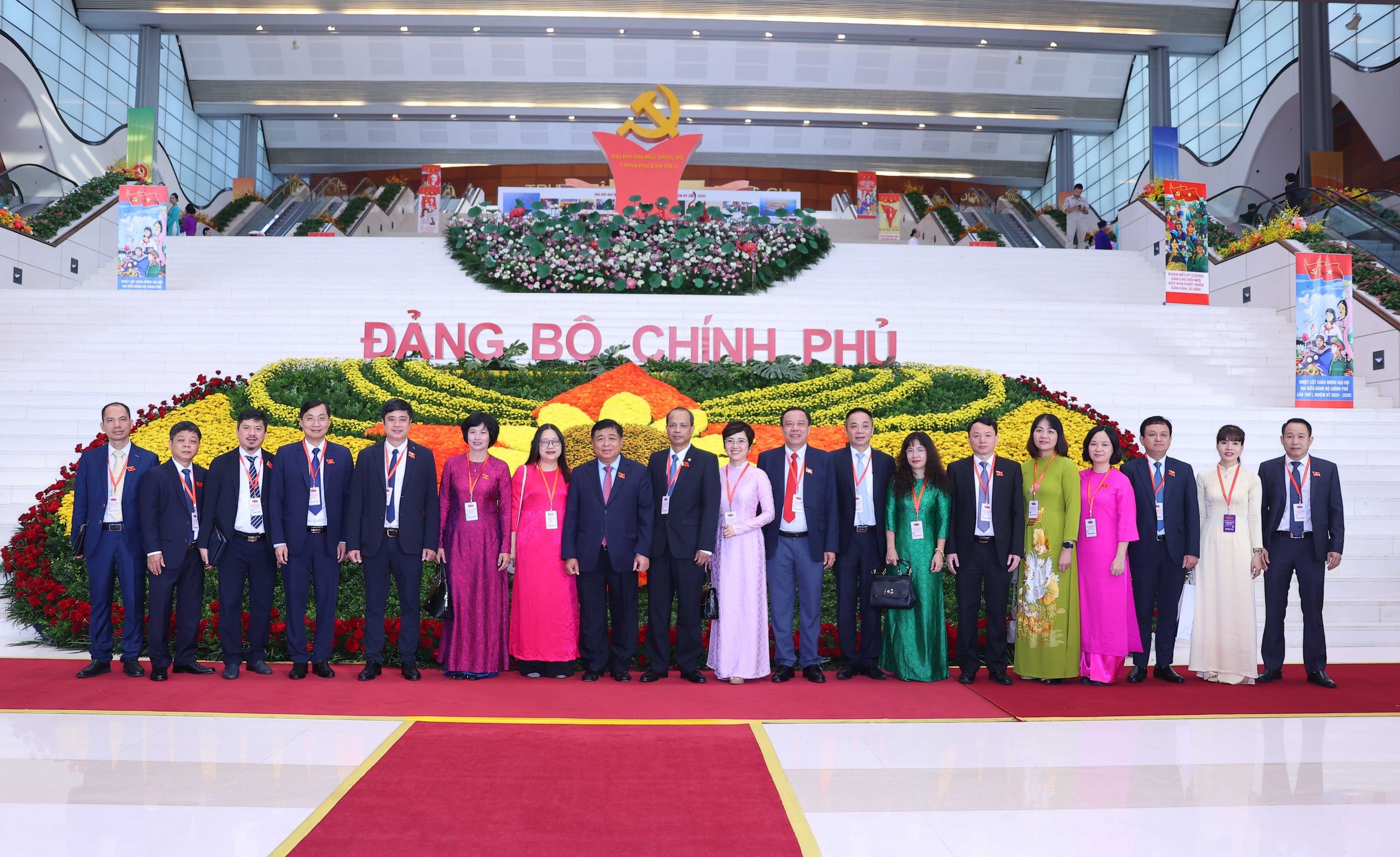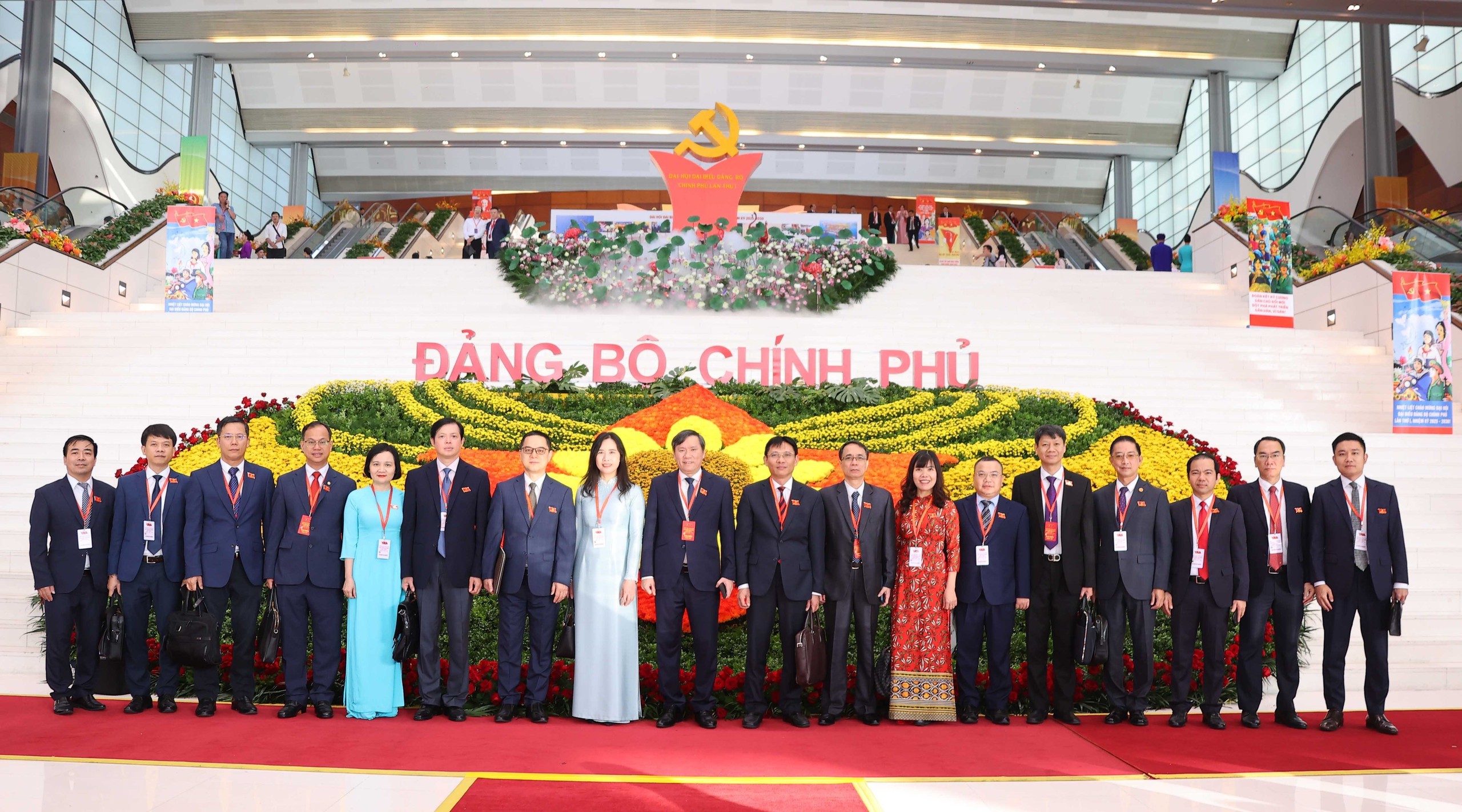 Dự Đại hội có các đồng chí: Tổng Bí thư Tô Lâm; nguyên Tổng Bí thư Nông Đức Mạnh; Ủy viên Bộ Chính trị, Chủ tịch nước Lương Cường; nguyên Ủy viên Bộ Chính trị, nguyên Chủ tịch nước Trương Tấn Sang; Ủy viên Bộ Chính trị, Bí thư Đảng ủy Chính phủ, Thủ tướng Chính phủ Phạm Minh Chính; nguyên Ủy viên Bộ Chính trị, nguyên Thủ tướng Chính phủ Nguyễn Tấn Dũng; Ủy viên Bộ Chính trị, Chủ tịch Quốc hội Trần Thanh Mẫn; các nguyên Ủy viên Bộ Chính trị, nguyên Chủ tịch Quốc hội Nguyễn Sinh Hùng, Nguyễn Thị Kim Ngân; Ủy viên Bộ Chính trị, Thường trực Ban Bí thư Trần Cẩm Tú; nguyên Uỷ viên Thường trực Bộ Chính trị, nguyên Chủ tịch Ủy ban Trung ương MTTQ Việt Nam Phạm Thế Duyệt; nguyên Ủy viên Bộ Chính trị, nguyên Thường trực Ban Bí thư Trần Quốc Vượng; các đồng chí lãnh đạo, nguyên lãnh đạo Đảng, Nhà nước, Mặt trận Tổ quốc Việt Nam; các đồng chí Ủy viên Bộ Chính trị, Bí thư Trung ương Đảng, Ủy viên Trung ương Đảng, Phó Thủ tướng Chính phủ, Phó Bí thư Đảng ủy Chính phủ; các đồng chí trong Ban Thường vụ Đảng ủy Chính phủ; lãnh đạo các bộ, ngành, cơ quan, các tập đoàn kinh tế là Ủy viên Ban Chấp hành Đảng bộ Chính phủ; lãnh đạo các ban, bộ, ngành, đoàn thể Trung ương.